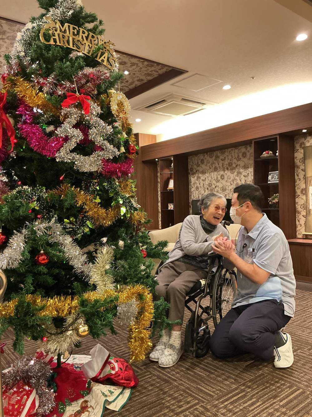 玄関でお客様をお迎えするツリーは、ご入居者様やご家族様から大変ご好評いただいており、皆様の写真スポットとなっております♪
