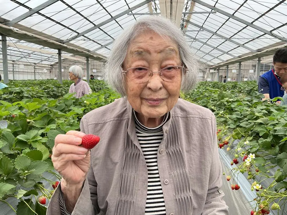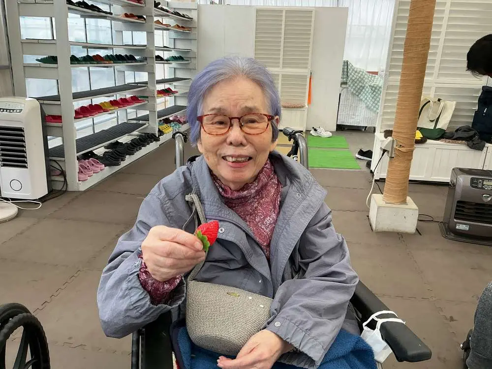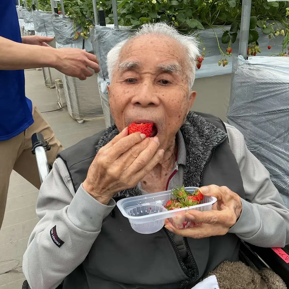 「帰って早く寝たい」と言われていた入居者様・・・ひと口いちごを食べると自然に笑顔に!帰りたいなんて言われなくなるほど夢中に召し上がっていらっしゃいました。