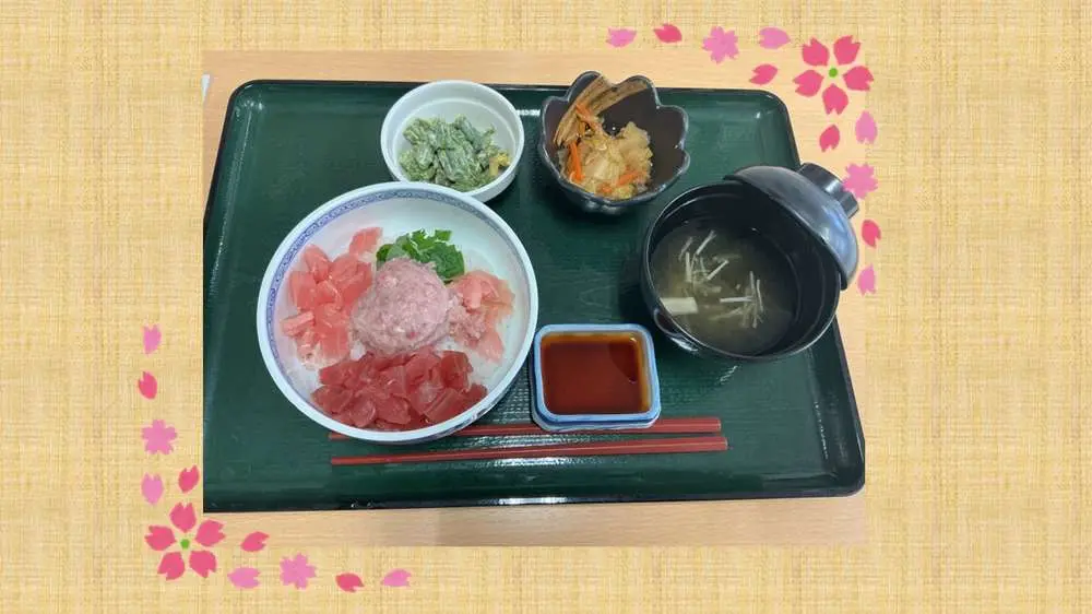 天丼の具材も、マグロの切り身も、ご入居様に応じて「食べやすい一口サイズ」に丁寧にカットして提供してくれました。 「お箸が進むわ」と、普段は小食な方もあっという間に完食されており、厨房スタッフの細やかな心遣いが嬉しい一日となりました。