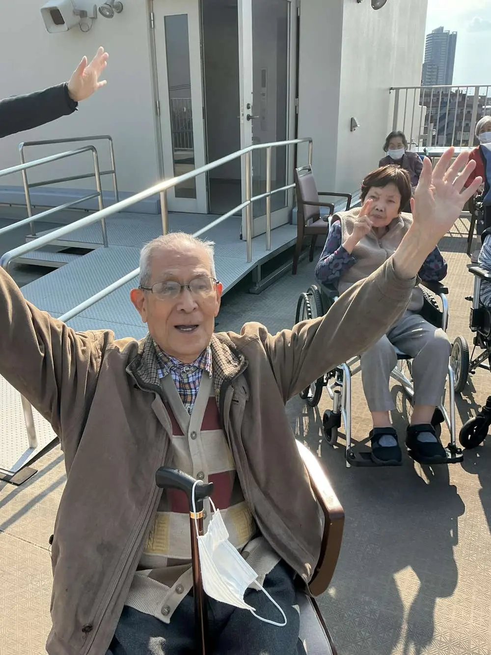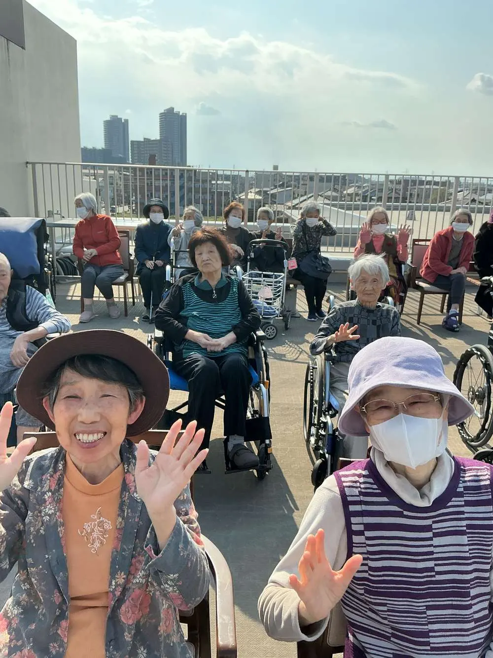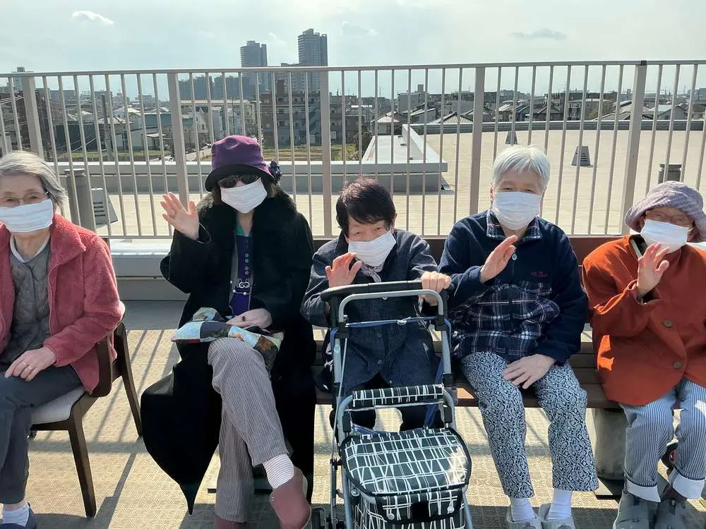 本日は天候にも恵まれましたので、屋上にて外気浴を行いました。