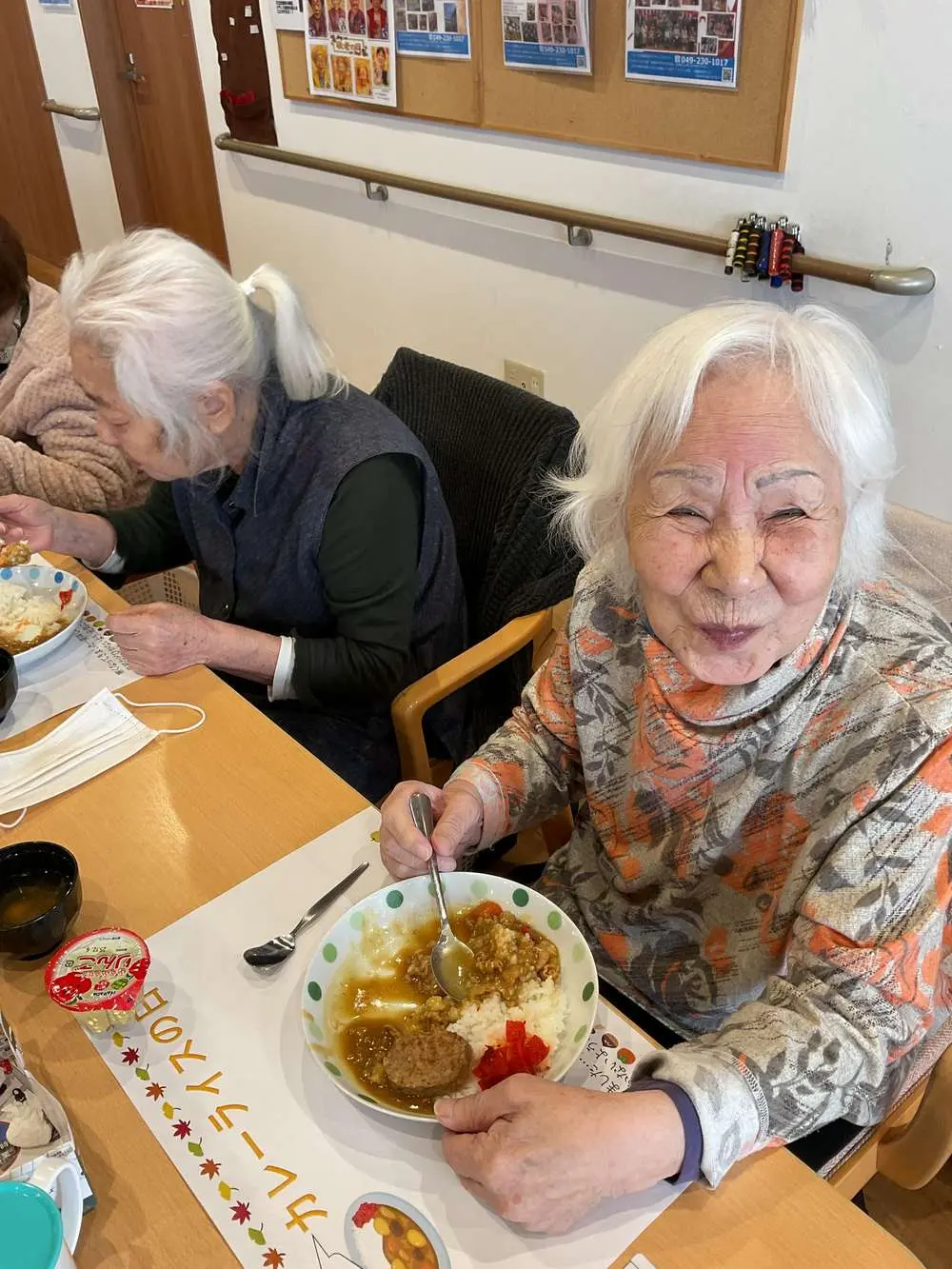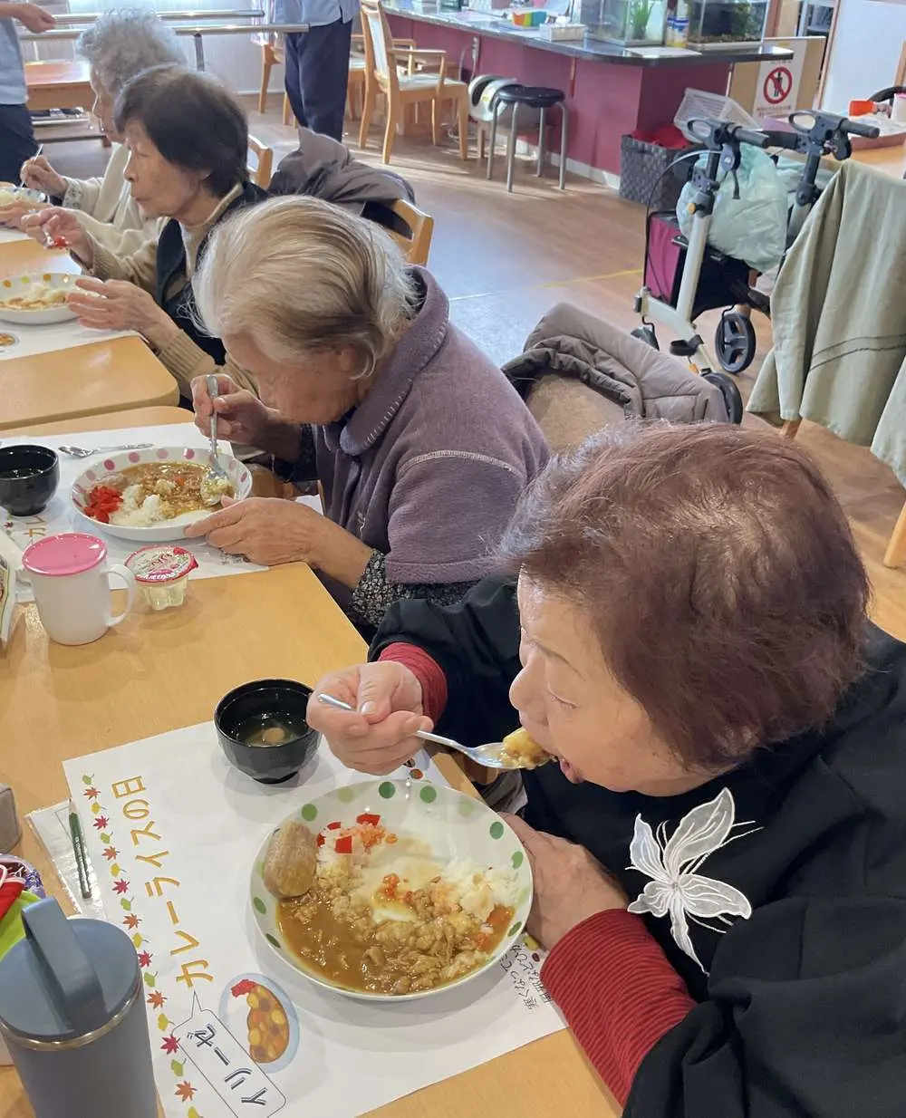 今月のカレーの日も到着時から「今日はカレーの日、準備しているいい匂いがするな♪」とお声掛けいただきました。