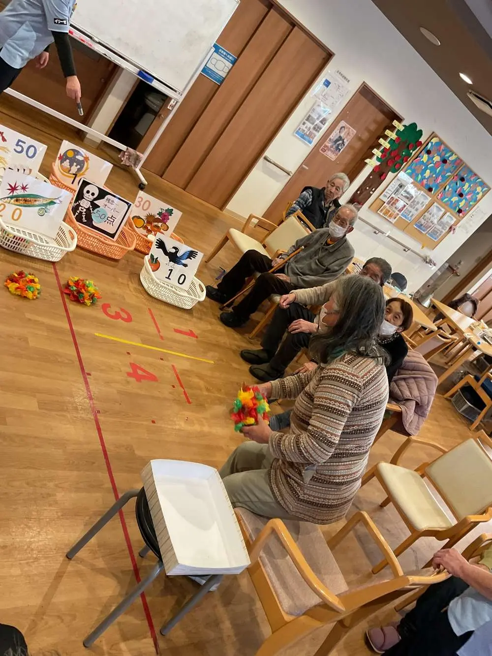 今回のレクリエーションは、【紅葉フリスピー】での的入れ‼