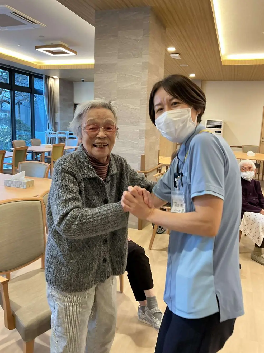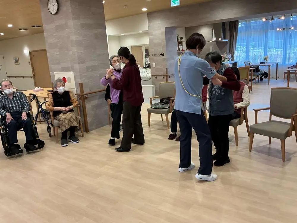 最後は実は経験者という入居者様が結構いらっしゃいまして、スタッフがステップを教わったりしました💃