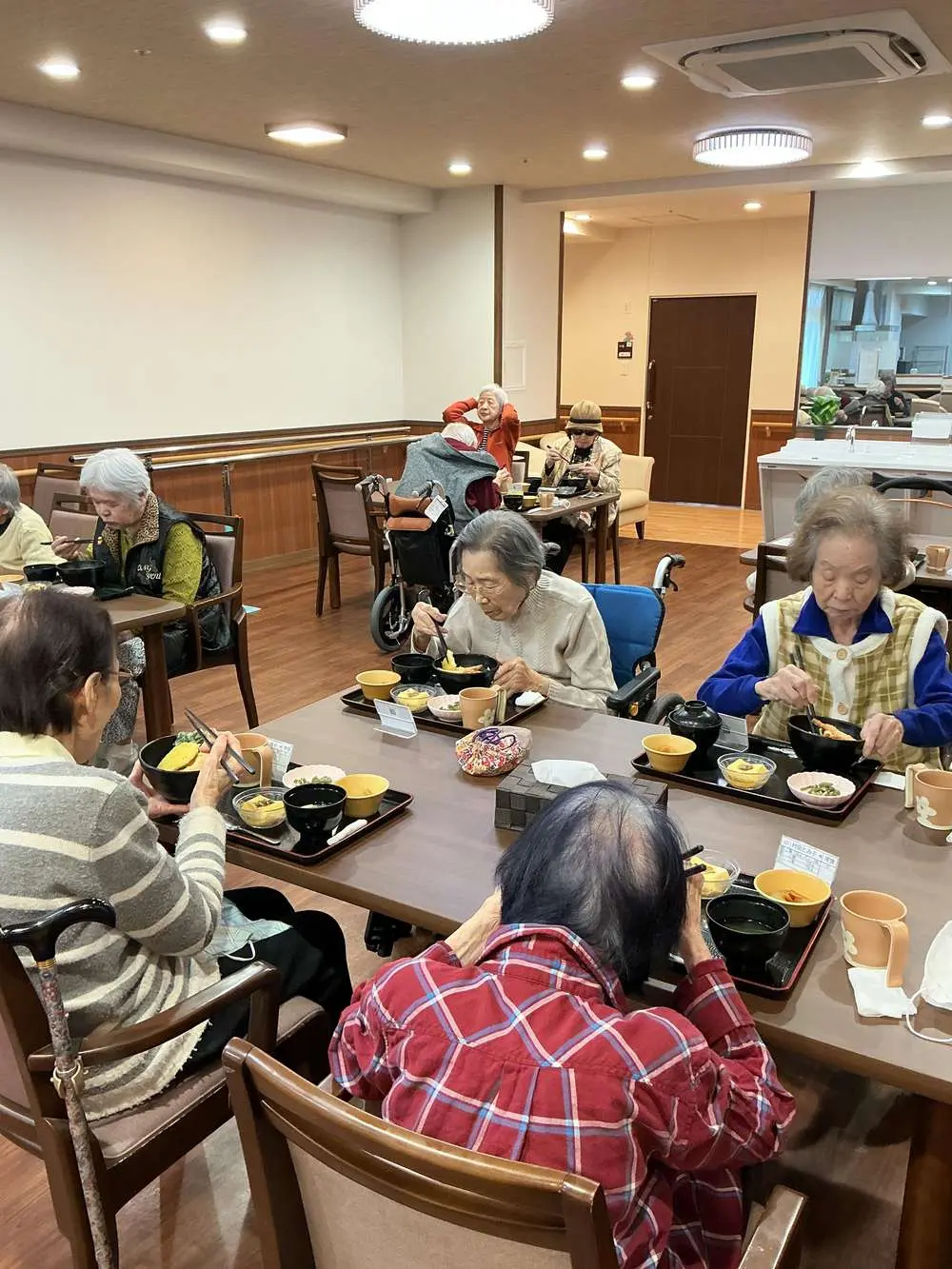 食堂に運ばれてきたお膳を見て、「わあ、綺麗ね!」「今日は豪華ね」と、皆様の顔に自然と笑みがこぼれます。