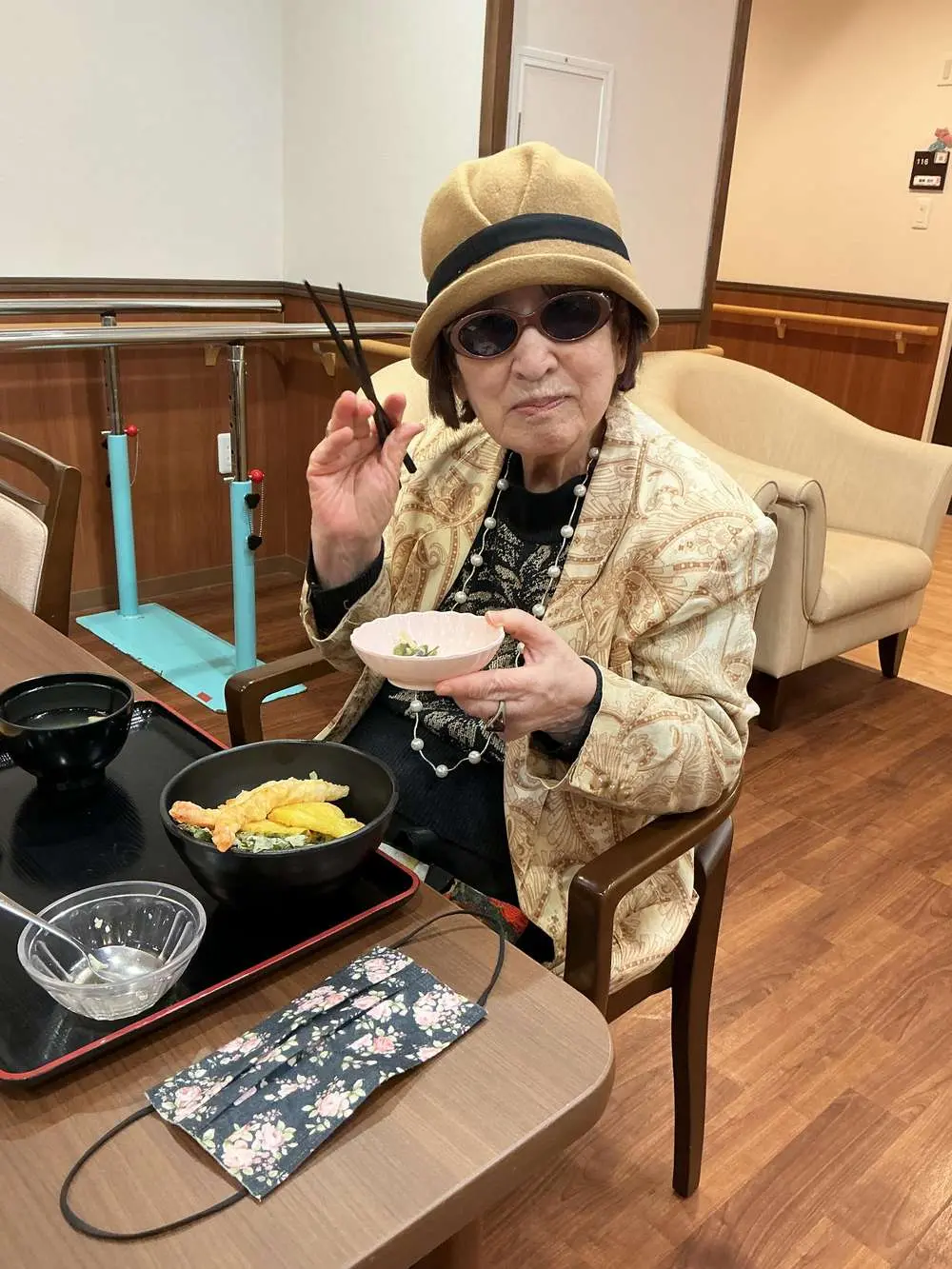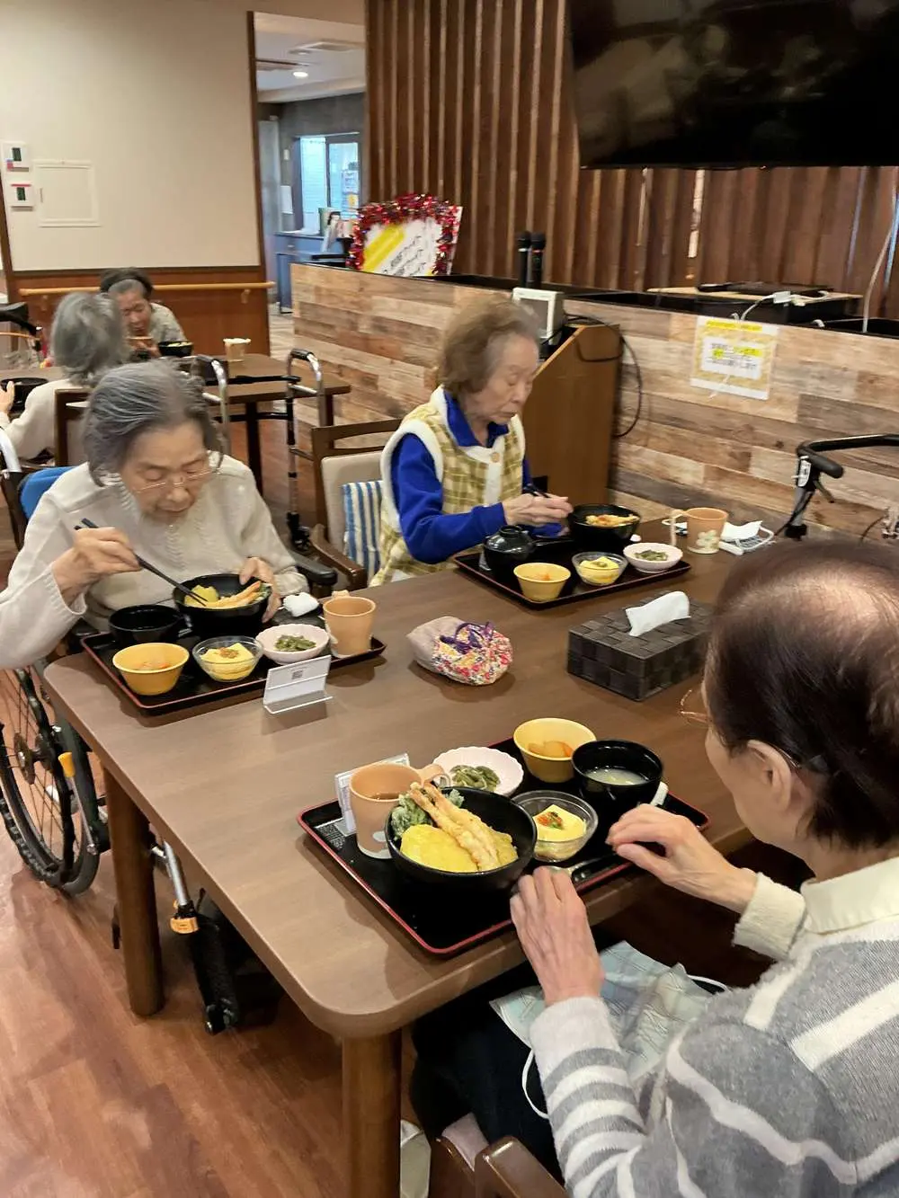 今日のご昼食には特別メニューの天丼をご提供したのですが
