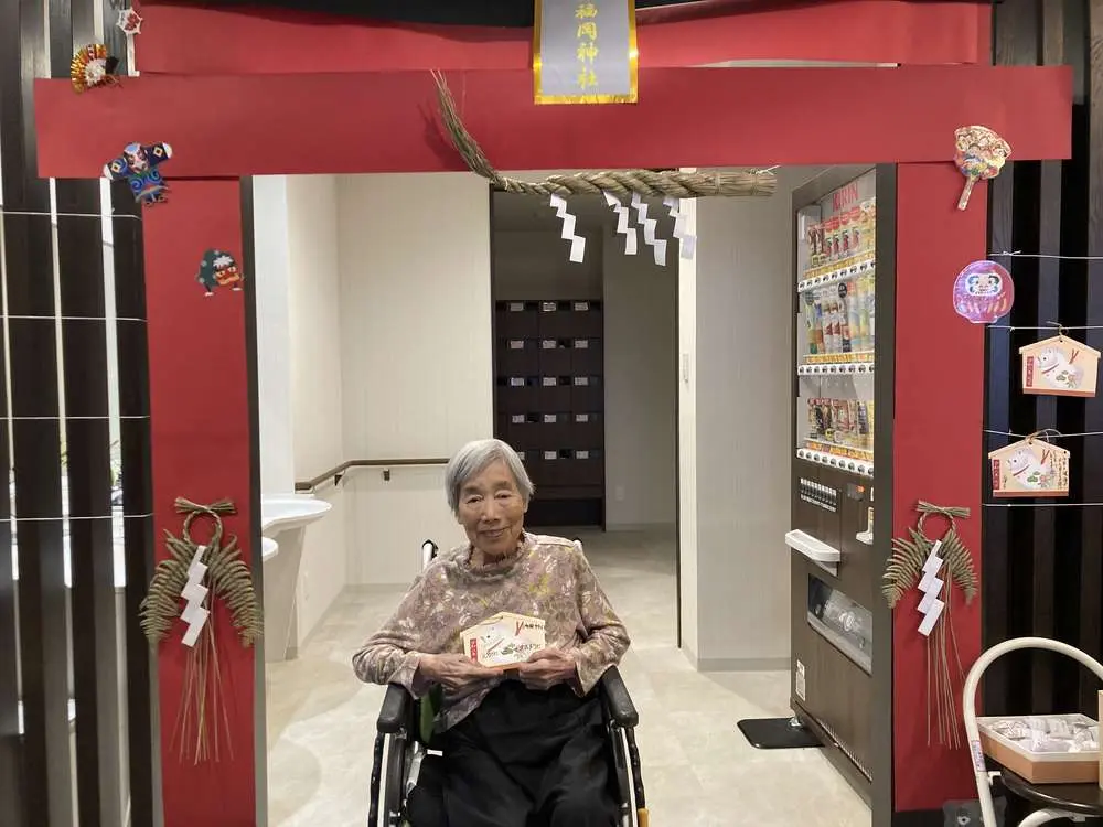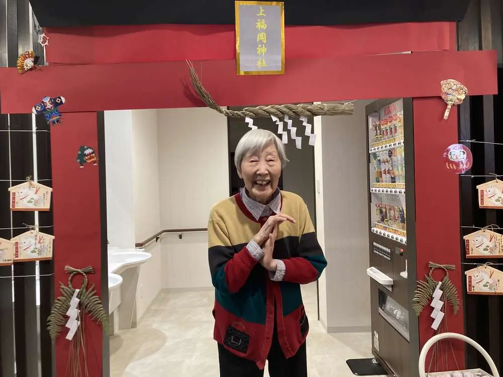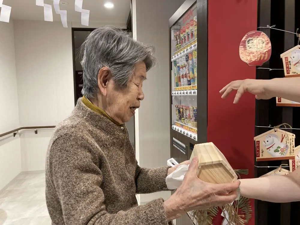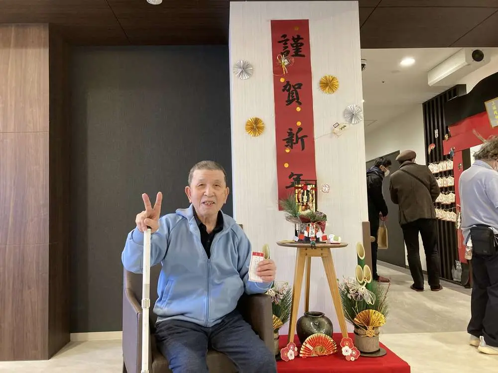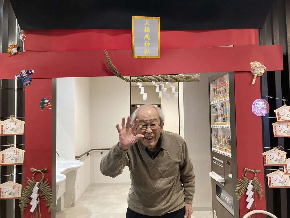 穏やかな元旦、1階ロビーにはイリーゼ上福岡神社が(数日で)建立され、初詣の入居者様で賑わっておりました。