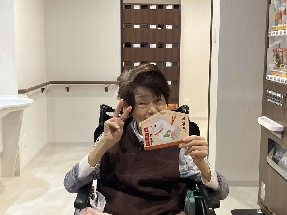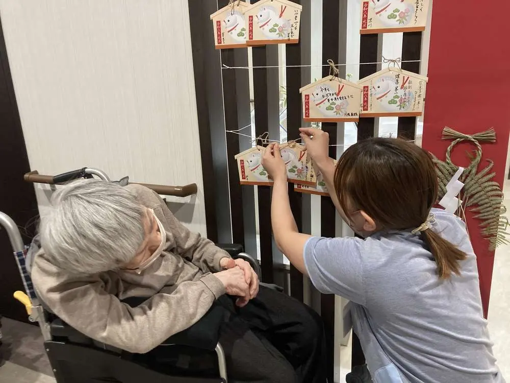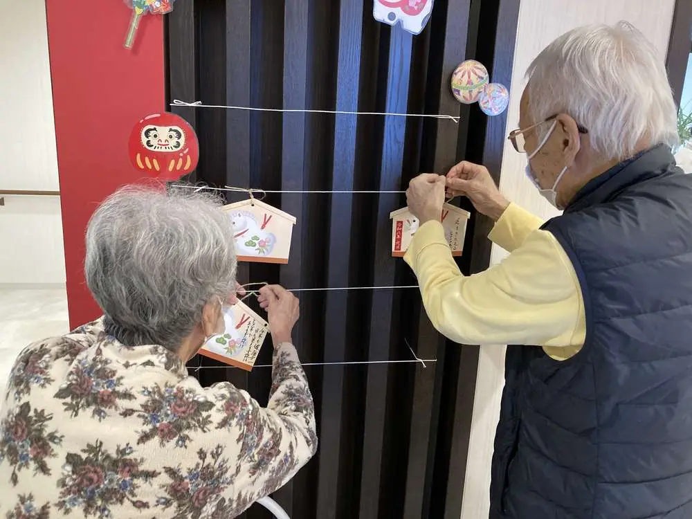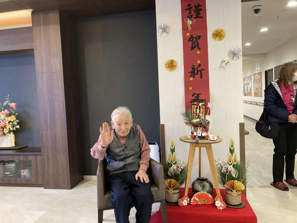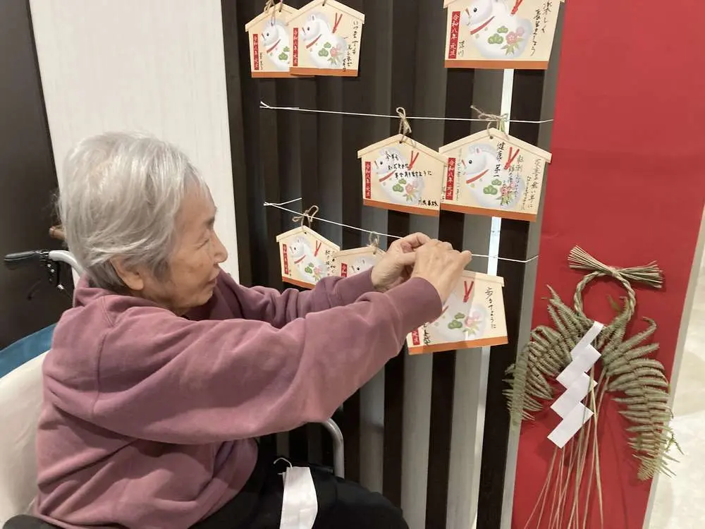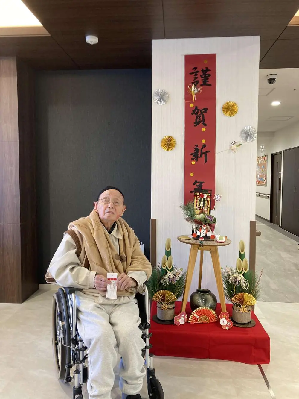 穏やかな元旦、1階ロビーにはイリーゼ上福岡神社が(数日で)建立され、初詣の入居者様で賑わっておりました。