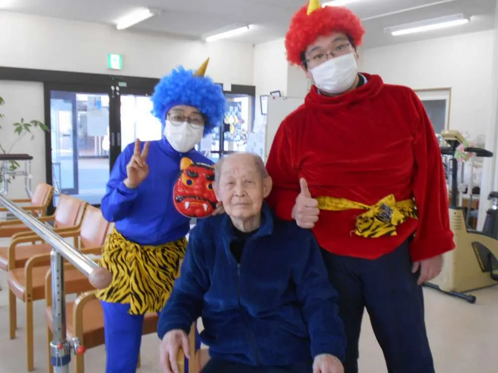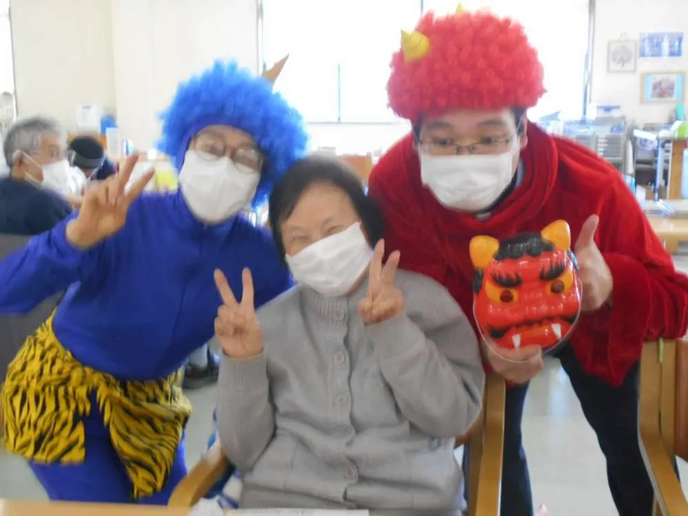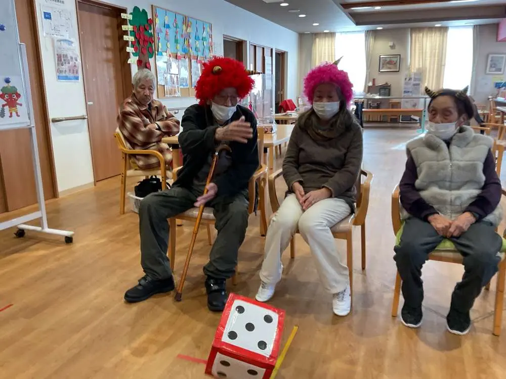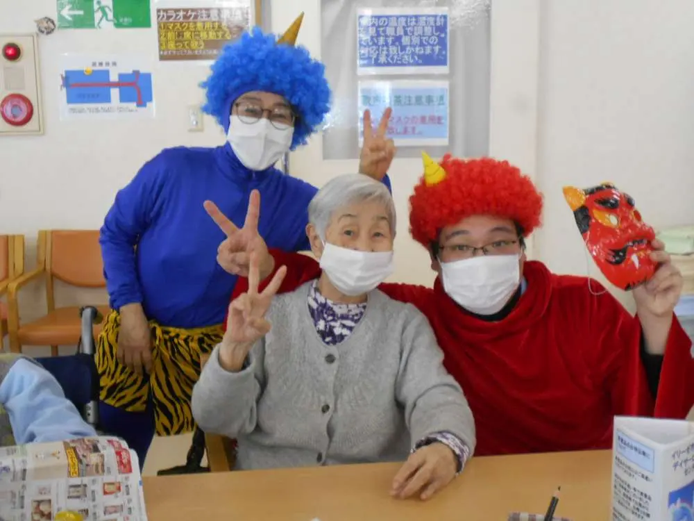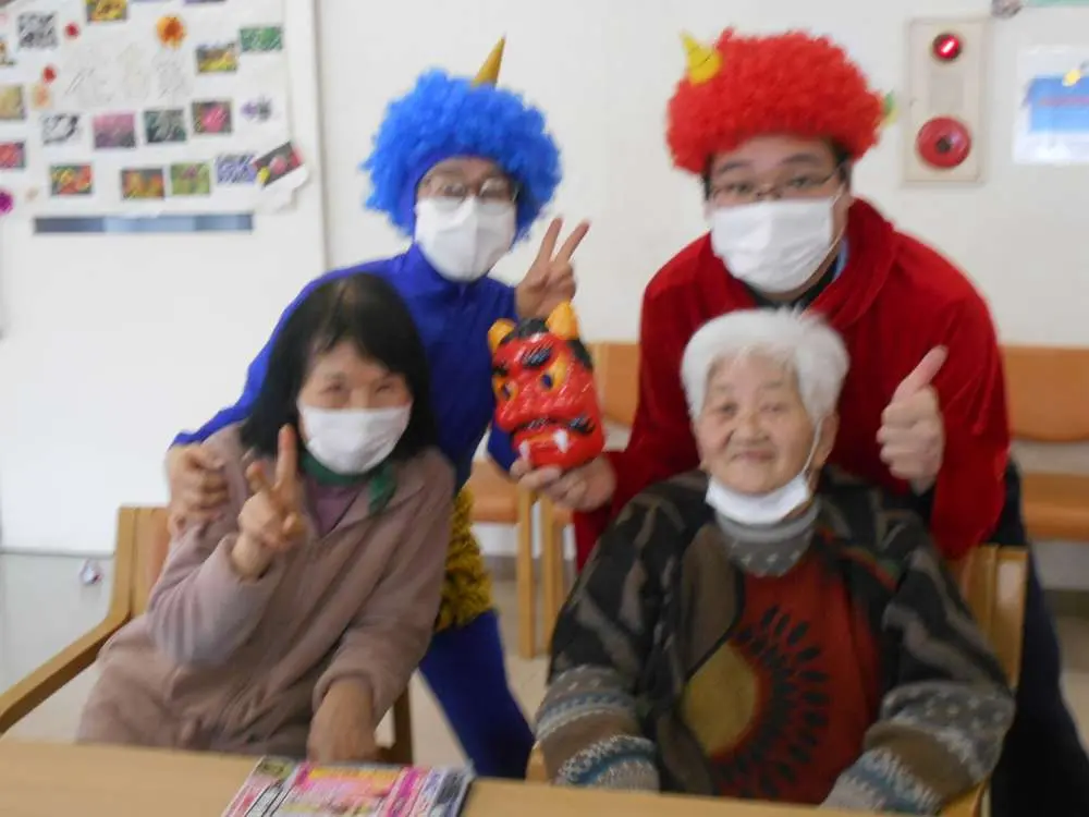 2026年の「無病息災」を願い節分レクを行いました😊鬼に向かって「鬼は外・福は内」と大きな声での豆まき。普段は「手が痛いわ」なんて言うご利用者様も今日ばかりは痛み知らず😂鬼と一緒に痛みも飛んでいきました。(笑)見て下さいこの笑顔!笑う門には福来る!今年も皆さん元気で1年過ごせますように✨