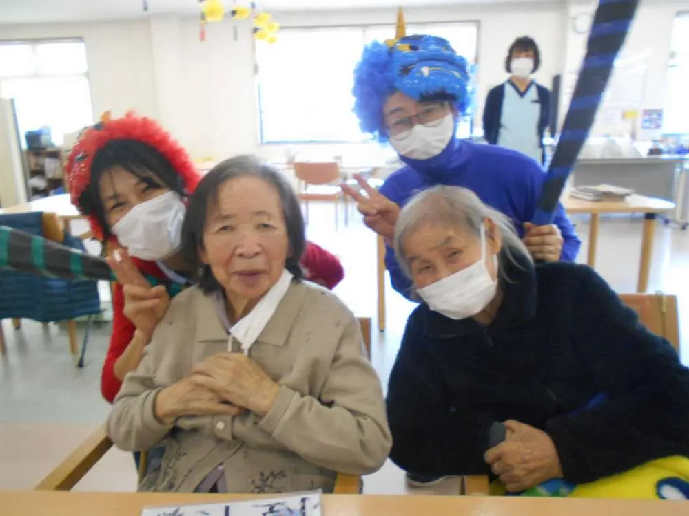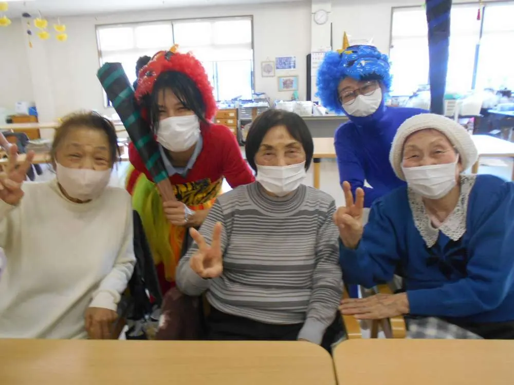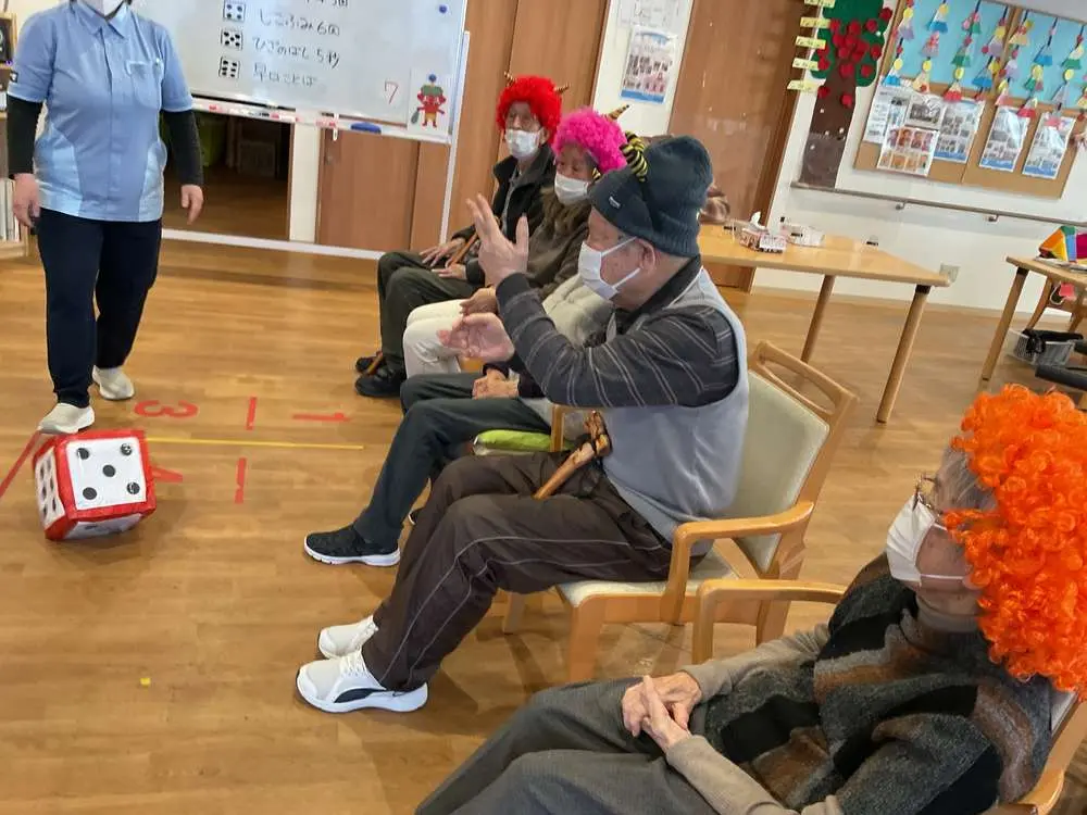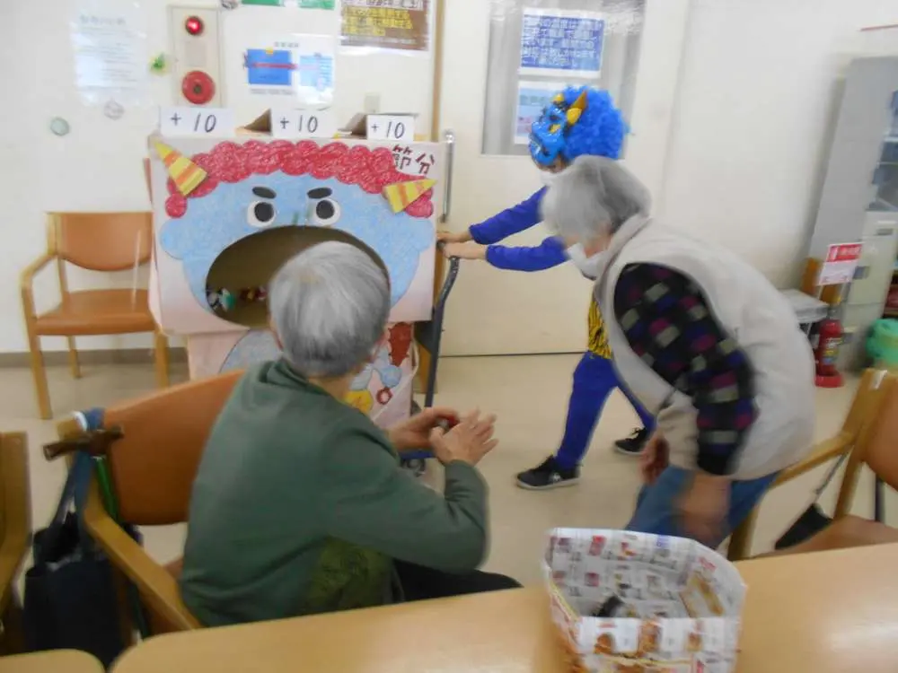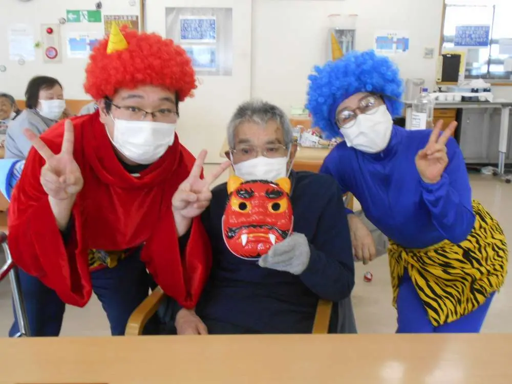 2026年の「無病息災」を願い節分レクを行いました😊鬼に向かって「鬼は外・福は内」と大きな声での豆まき。普段は「手が痛いわ」なんて言うご利用者様も今日ばかりは痛み知らず😂鬼と一緒に痛みも飛んでいきました。(笑)見て下さいこの笑顔!笑う門には福来る!今年も皆さん元気で1年過ごせますように✨