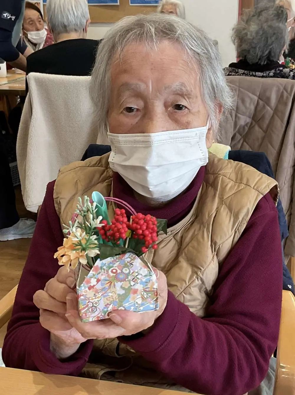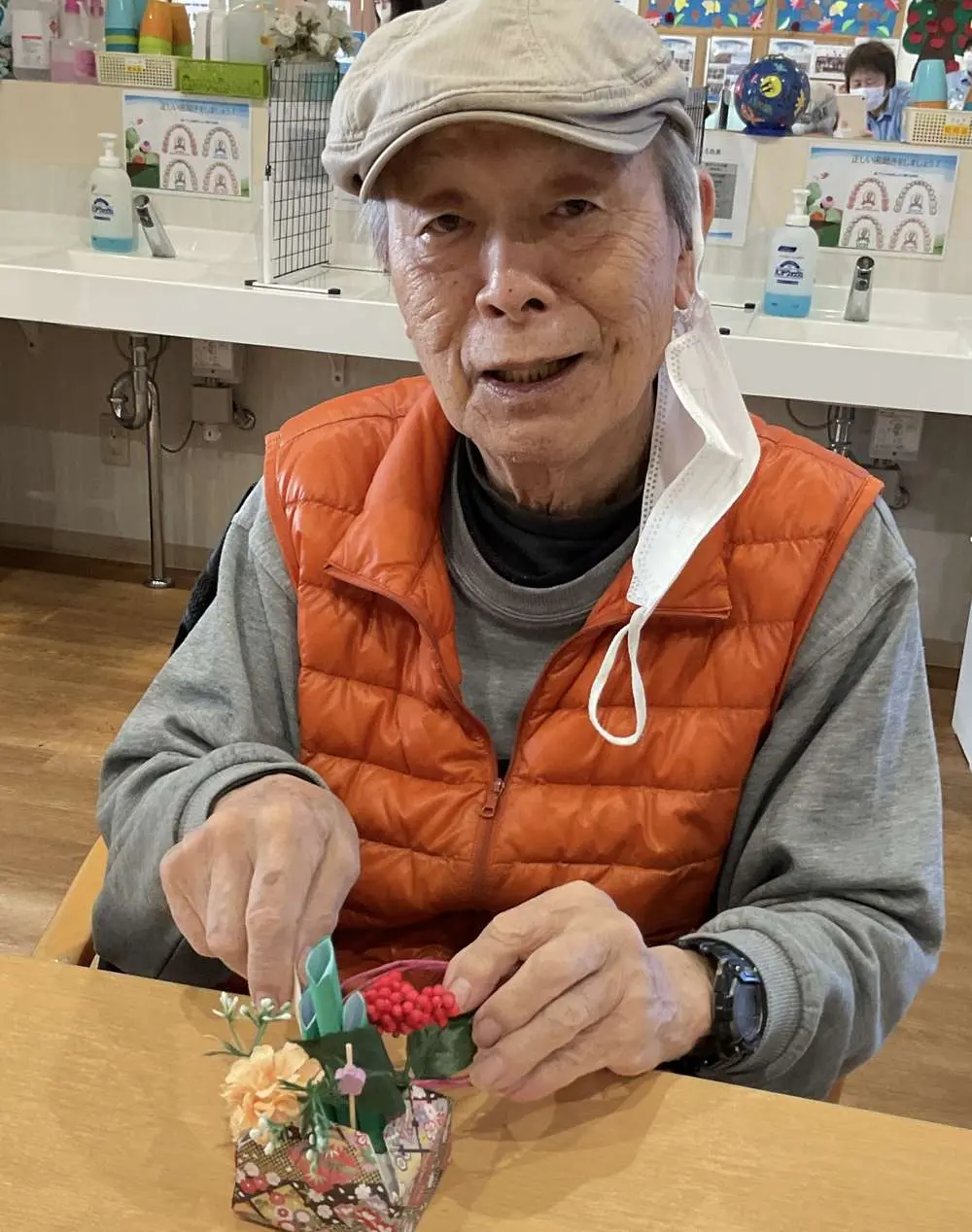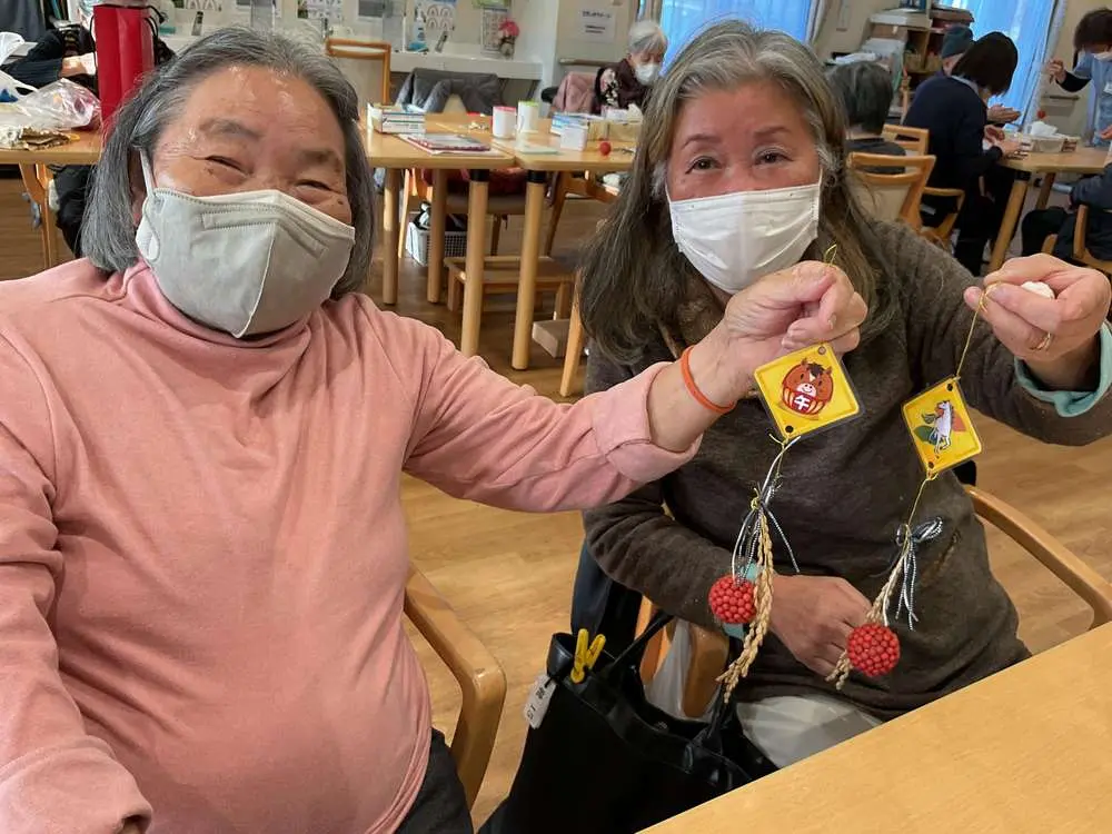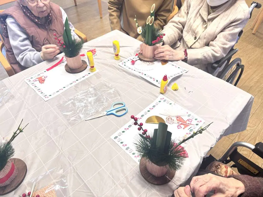 川越南古谷デイサービスでは、お正月準備の創作レクで