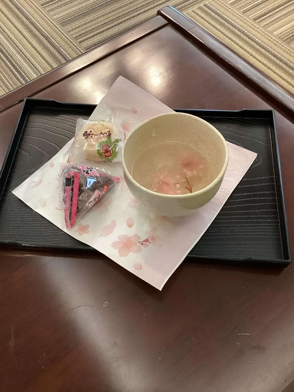 配膳の瞬間から、食堂には桜の葉の優しい香りがふわっと広がり、皆さま「わあ、綺麗ね」「良い香り!」と目を細めて喜んでくださいました。