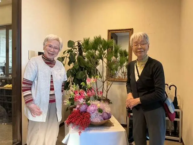皆さま、見本を見ながら職員のアドバイスを聞き、ご自身でバランスもよく考えそれぞれの作品が出来上がっています♫