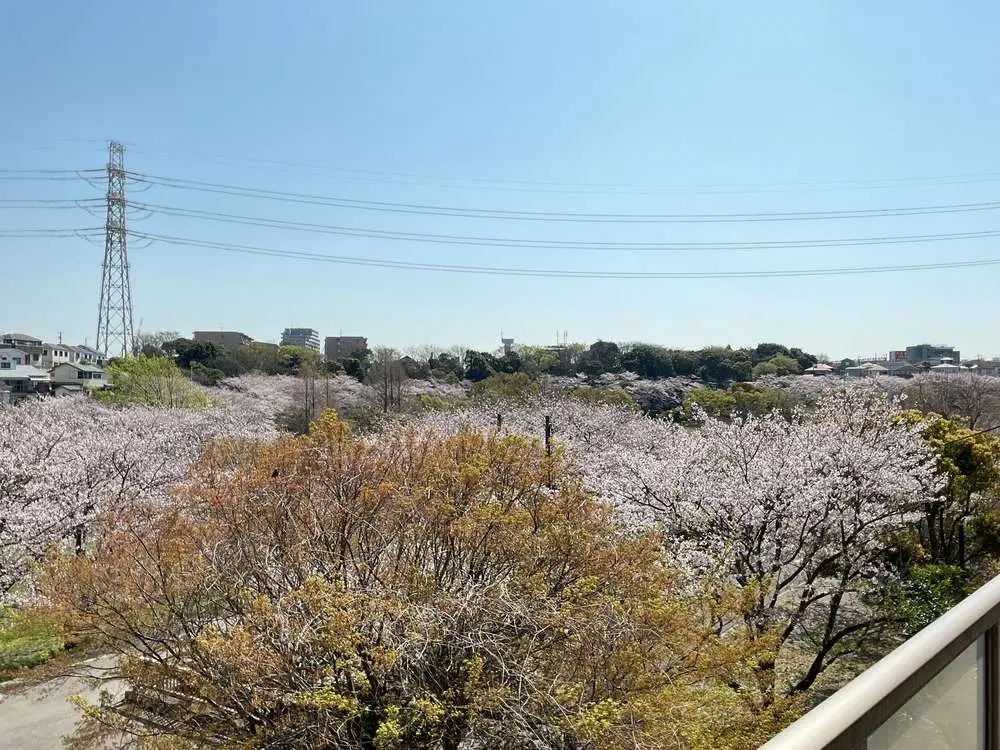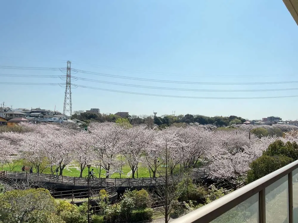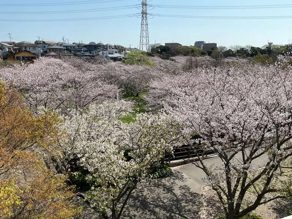 隣接する長津川親水公園の桜が見事に満開になりました🌸