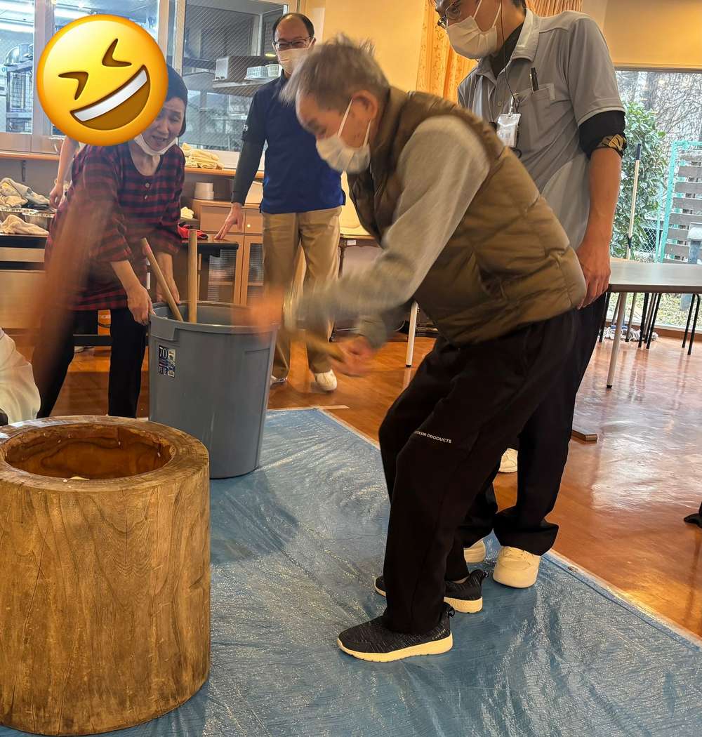 もち米を蒸して、杵と臼でもちつきをするという昔ながらのスタイルでやったので、とても体力が必要でした💦しかし皆様のご協力でとてもおいしいお餅ができました🥰杵を持って「もちつきを皆様の前でするのは恥かしい!」と嫌がっていたご利用者様もやってみたら「とても楽しかった☺️」とおっしゃって頂きました!!あっという間に年内最後のイベントが無事終わりました😆