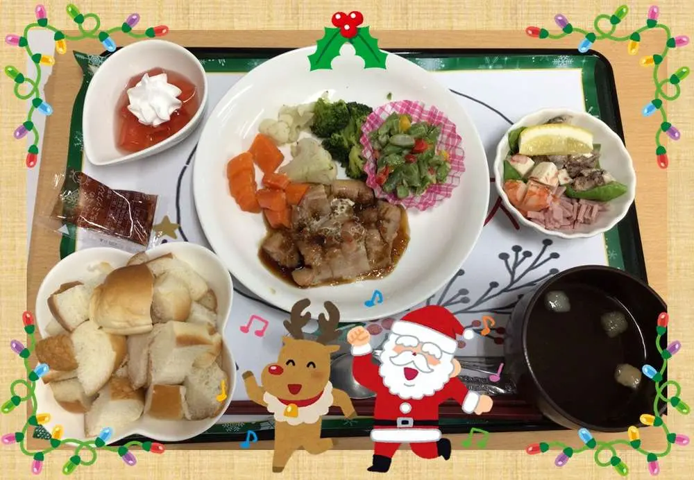 本日のメインイベントは何といっても、厨房スタッフ特製の**「クリスマス特別メニュー」**です!