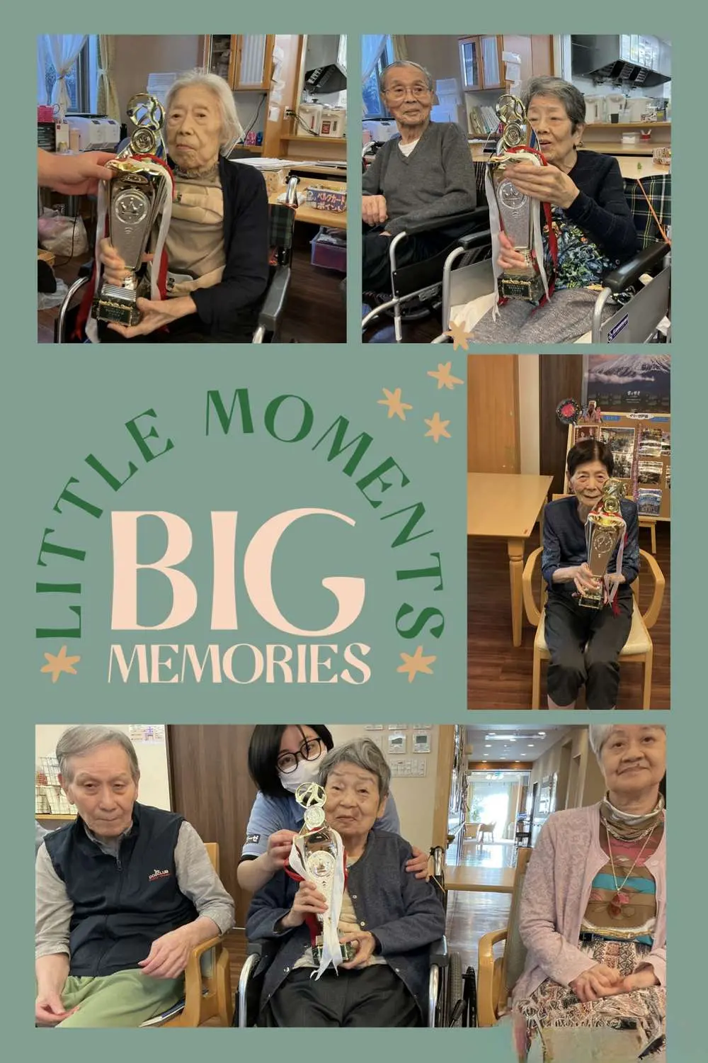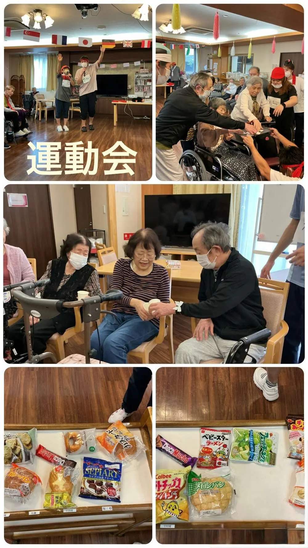 最後の競技はスタッフによるパン食い競争。釣り竿に付けられたパンは思ったより揺れ、なかなか口に入らない・・・(笑)私、竿を持っていましたが静止するのが結構難しくて途中から息を止めていました(‘ω’)(冗談で~す)入居者さんもスタッフもお疲れモードでした。