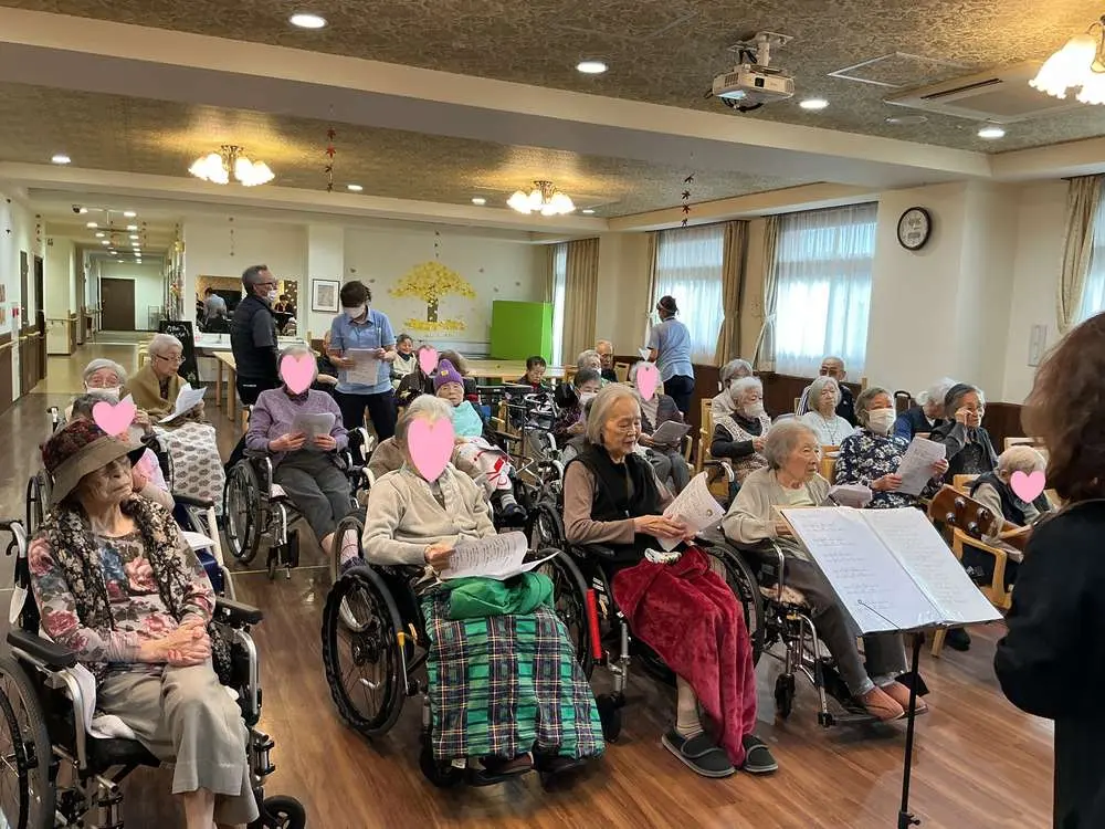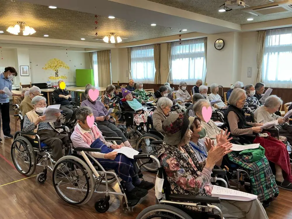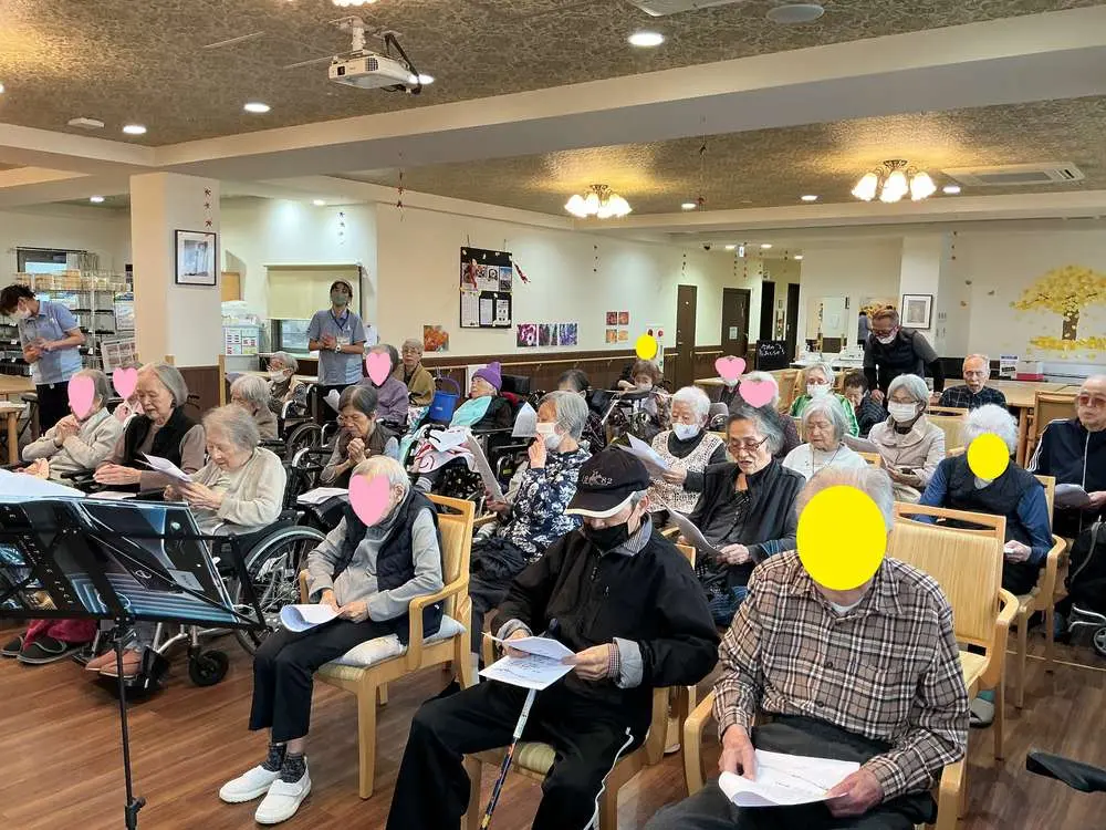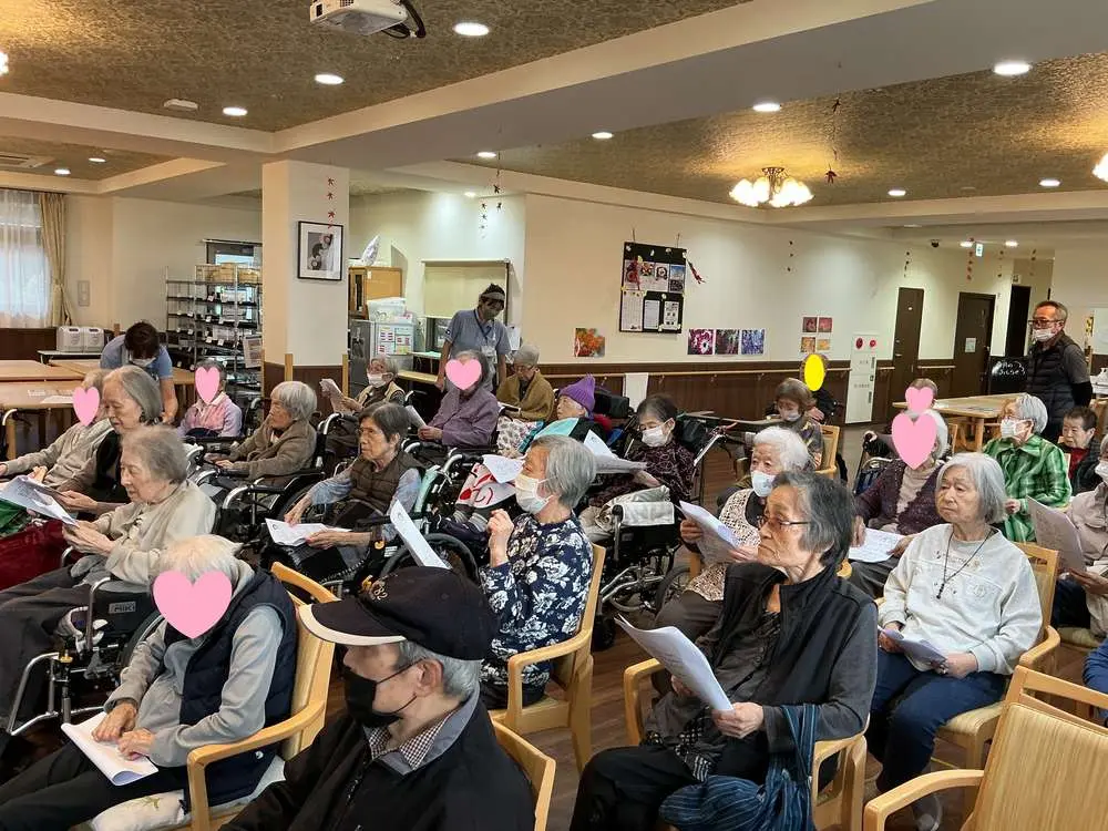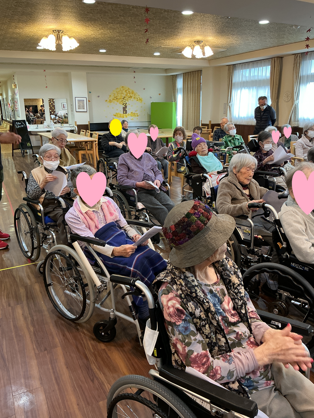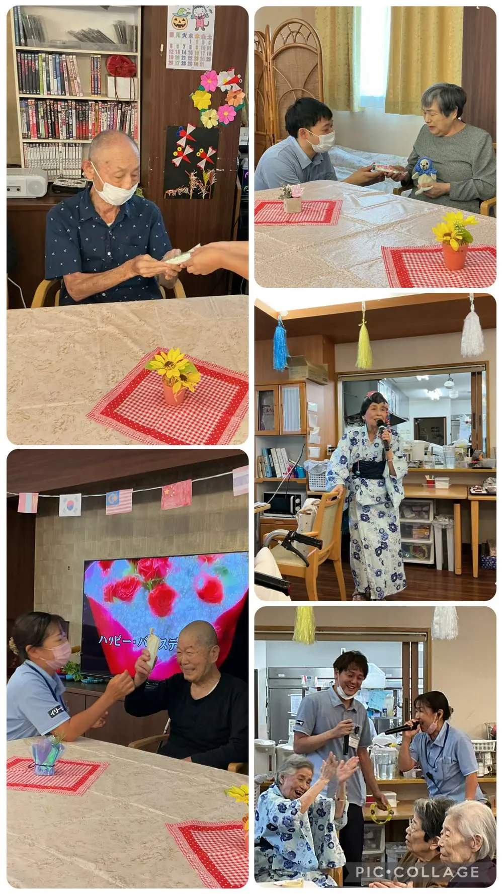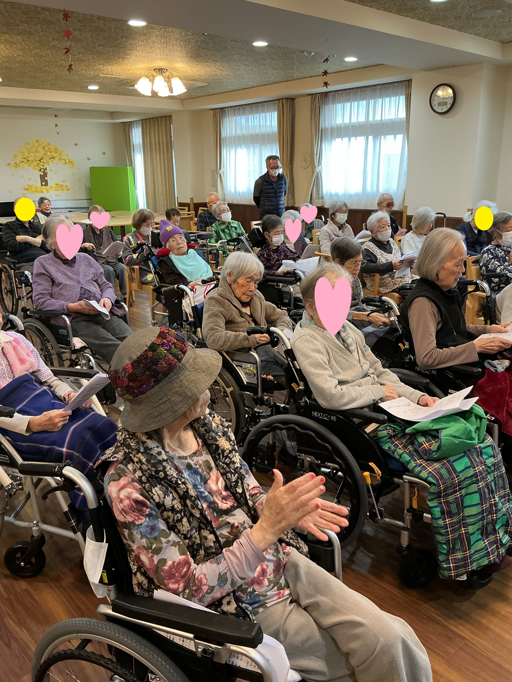 今回は入居者のM様が一肌脱いでくださり、芸者さんに扮装して「お座敷小唄」を歌って下さいました!誕生日を迎えた方々も大喜びで、最後は皆で「麦畑」を歌って盛り上がり素敵な誕生日会となりました(*^^*)