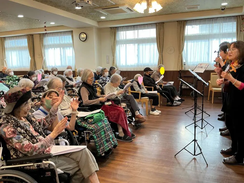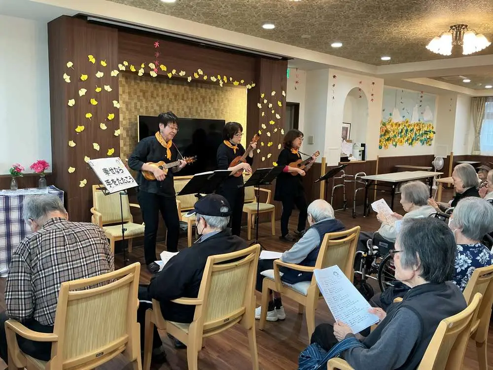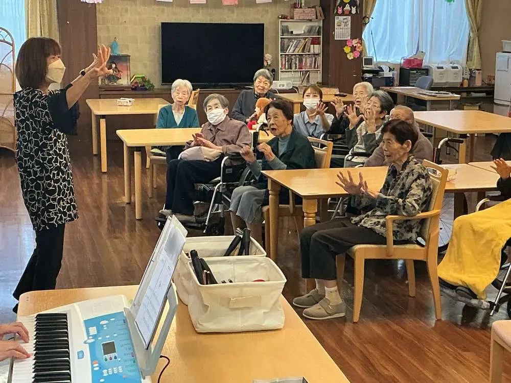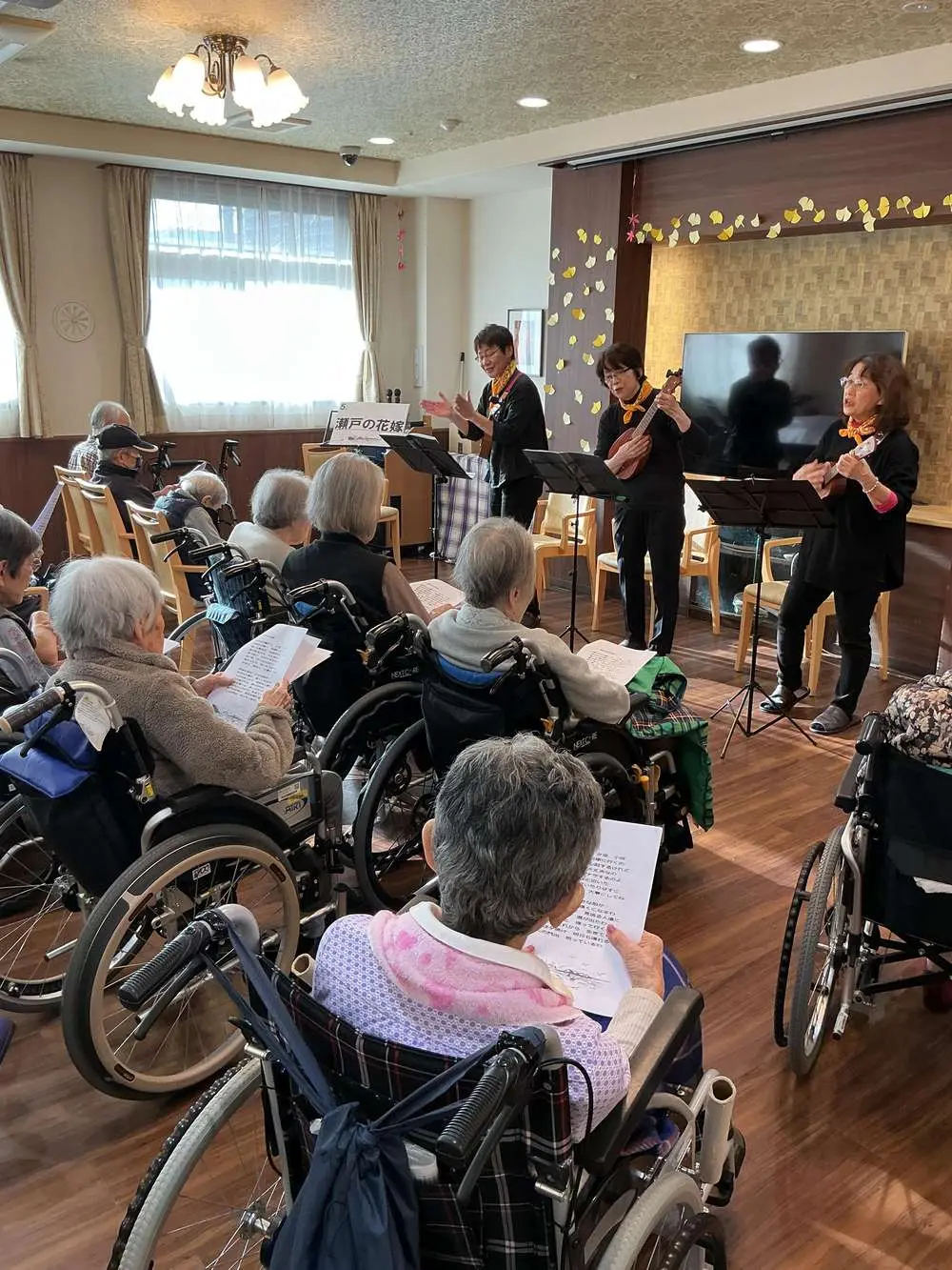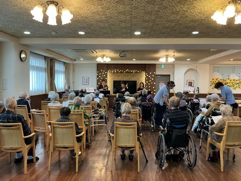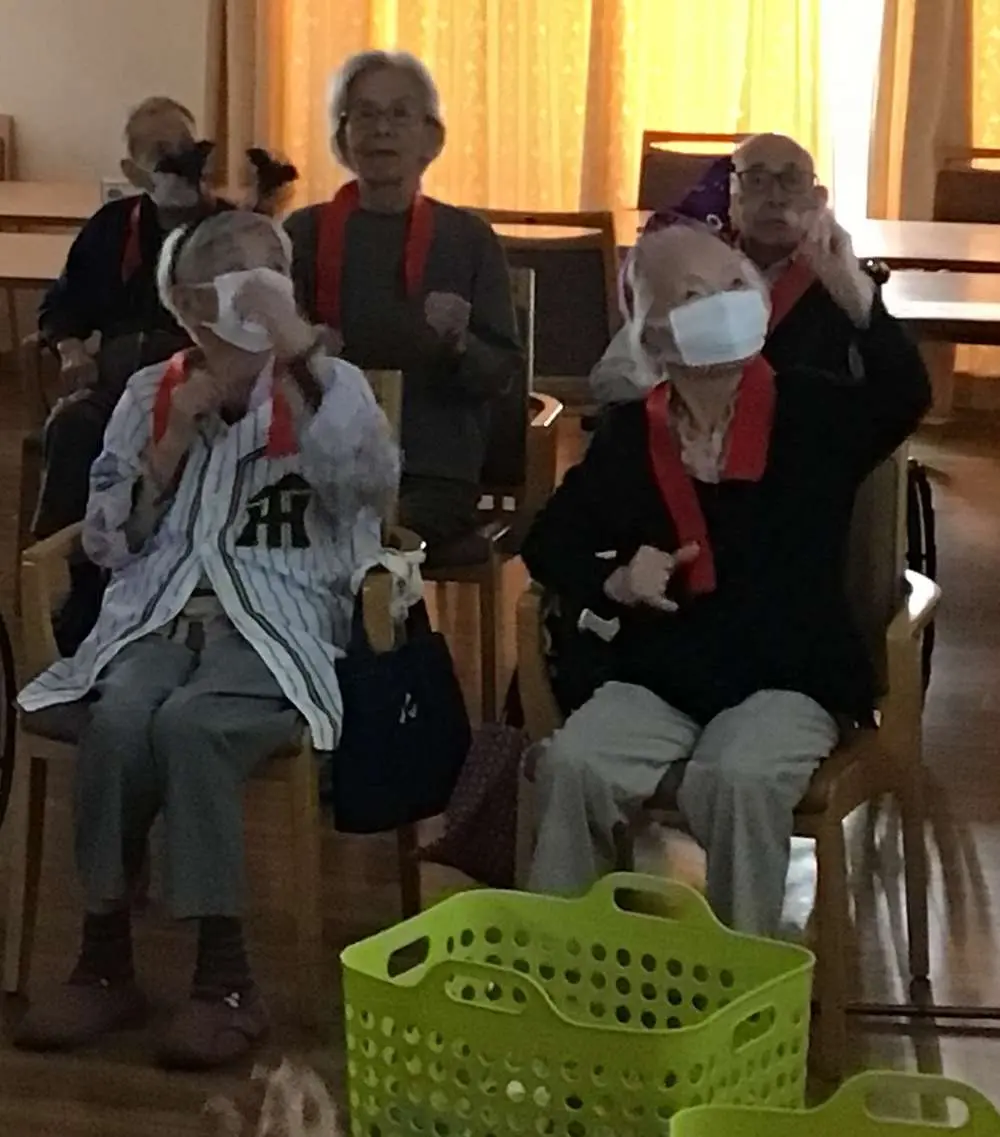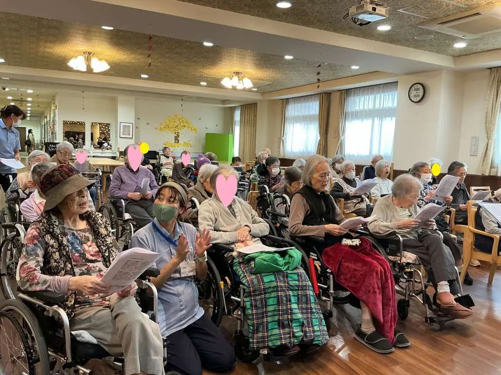 今回は入居者のM様が一肌脱いでくださり、芸者さんに扮装して「お座敷小唄」を歌って下さいました!誕生日を迎えた方々も大喜びで、最後は皆で「麦畑」を歌って盛り上がり素敵な誕生日会となりました(*^^*)
