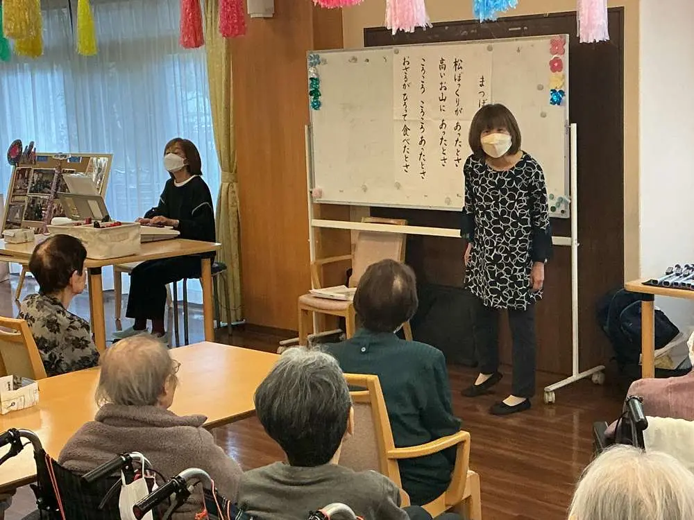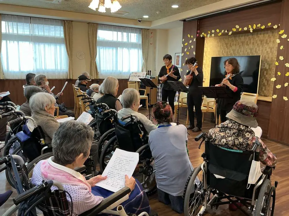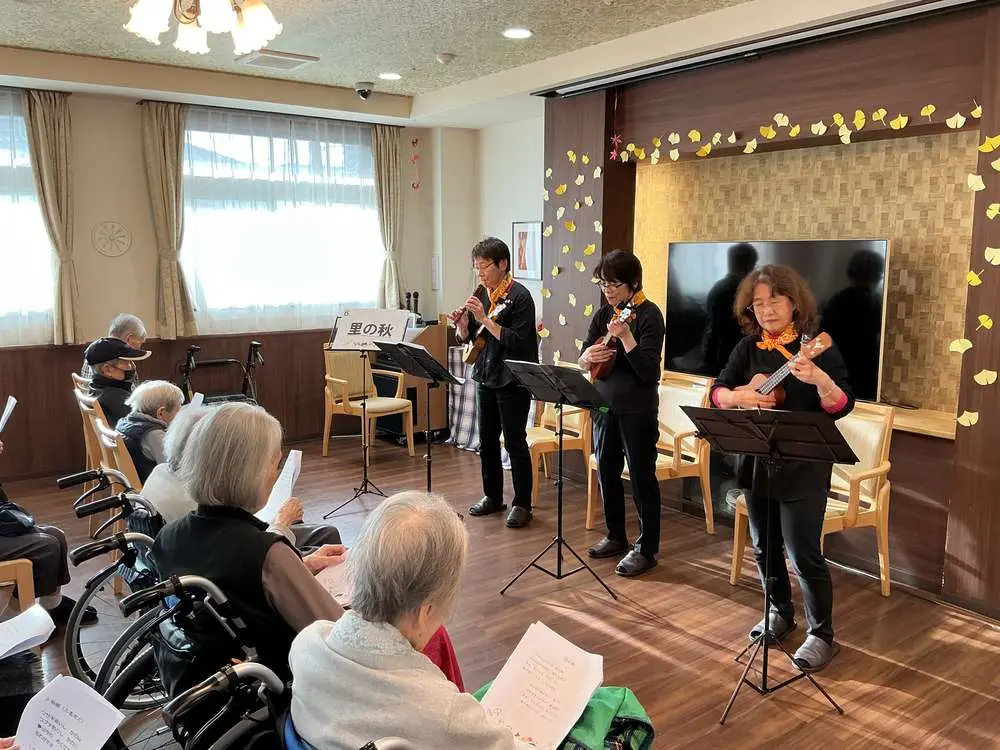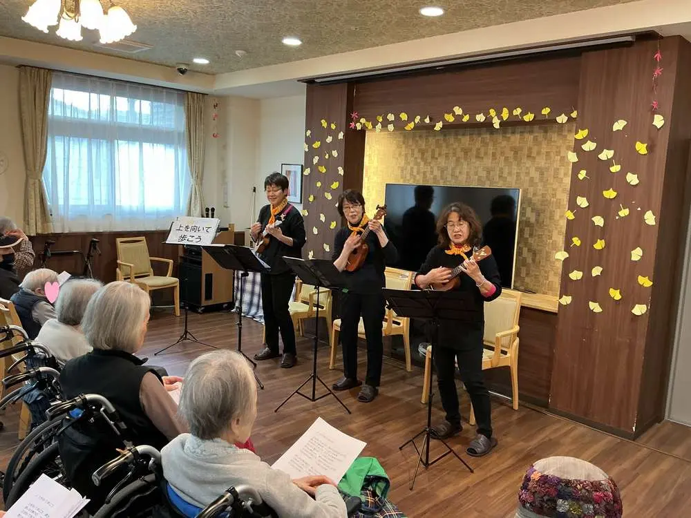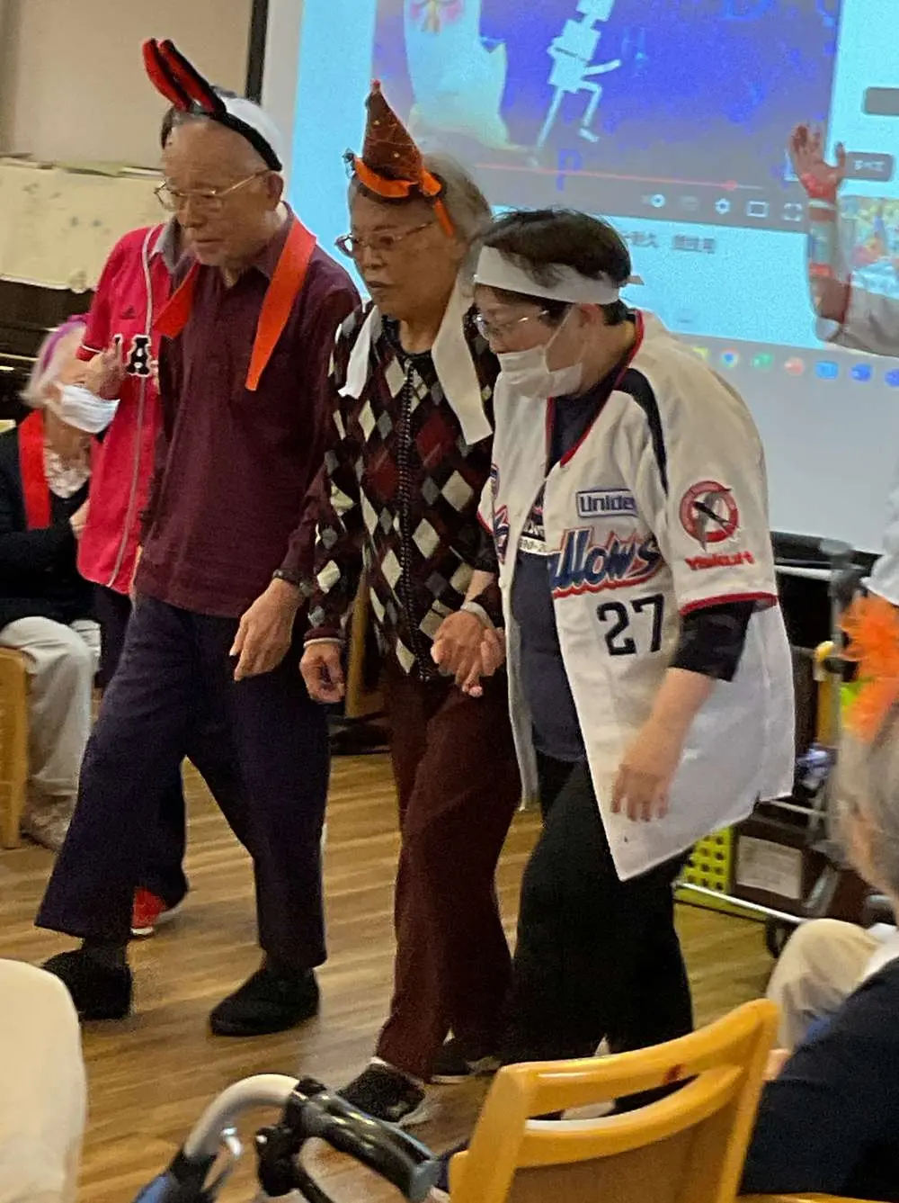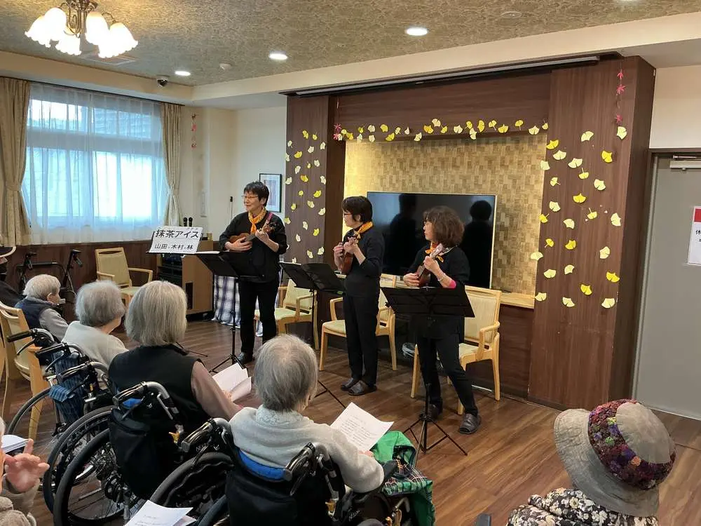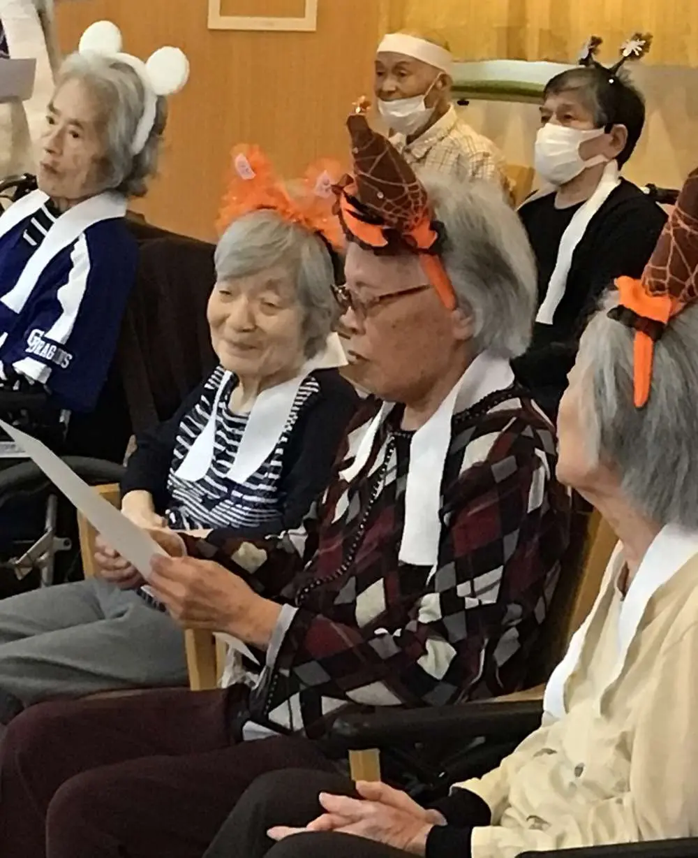 今回は入居者のM様が一肌脱いでくださり、芸者さんに扮装して「お座敷小唄」を歌って下さいました!誕生日を迎えた方々も大喜びで、最後は皆で「麦畑」を歌って盛り上がり素敵な誕生日会となりました(*^^*)