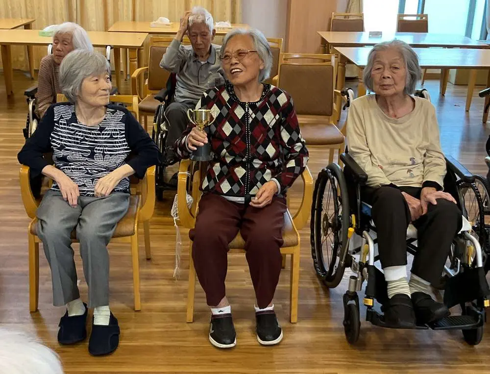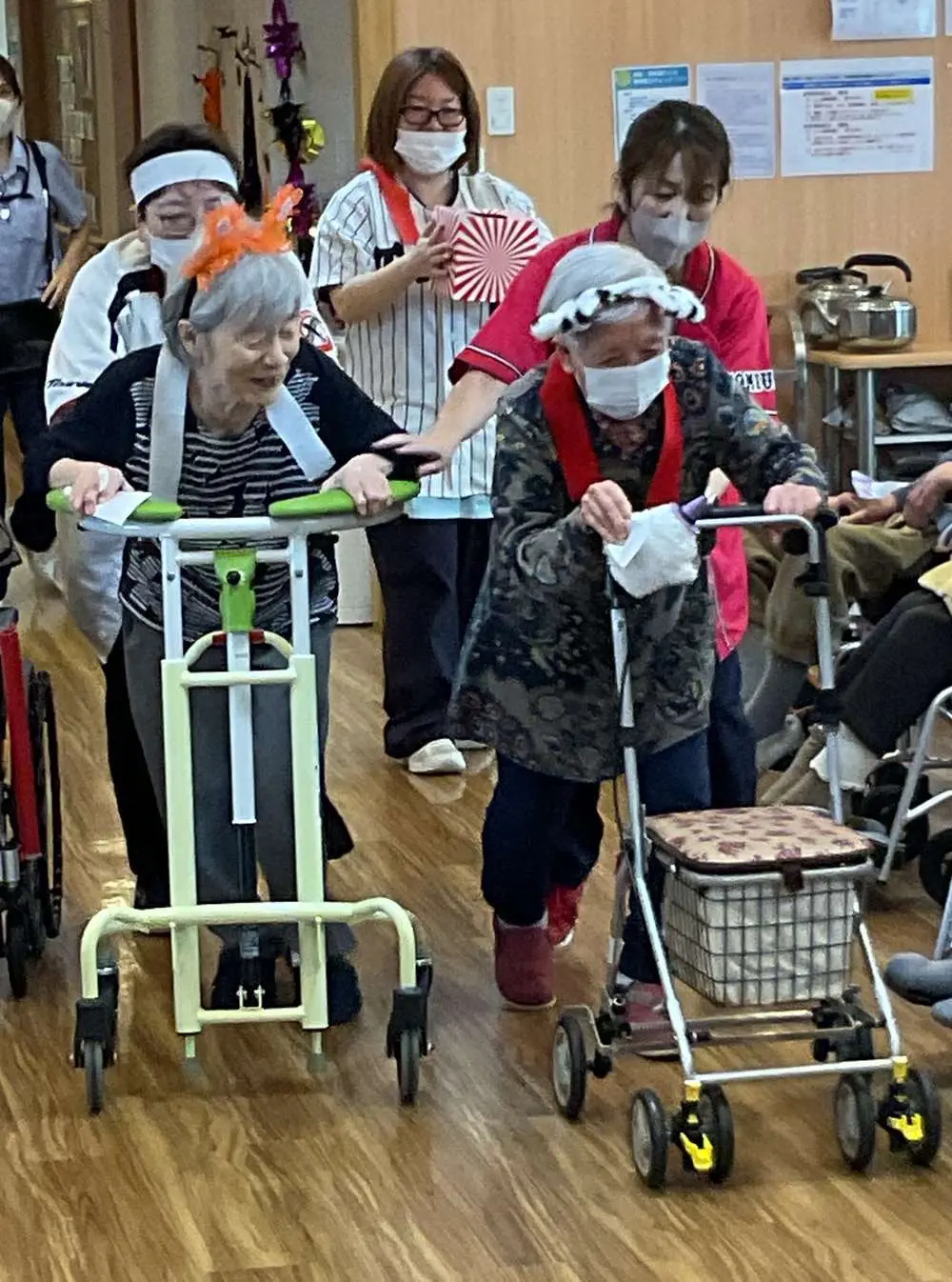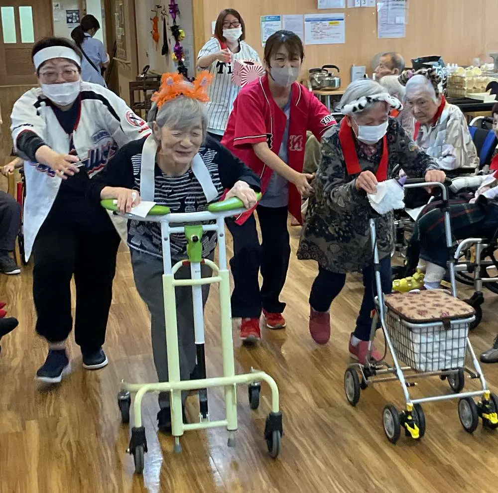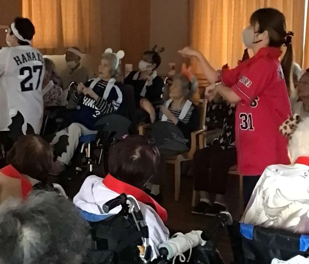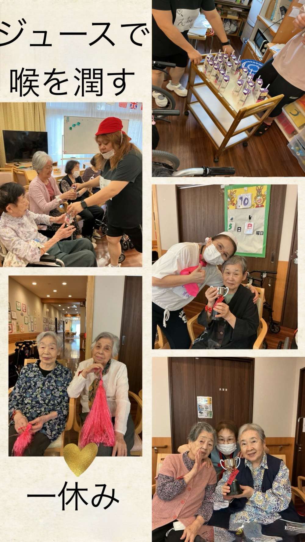 秋といえば食欲の秋と運動の季節。当施設でも大運動会を行いました!今回もレク委員が頑張ってくれて、試行錯誤をしていろいろな競技を行いました(´▽`)赤白に分かれ応援の掛け声も大きく、白熱の戦い!!皆さんの競技としては、紙コップにゴルフボールを次々と入れていき、どちらのチームが先にゴールをするか競いました。