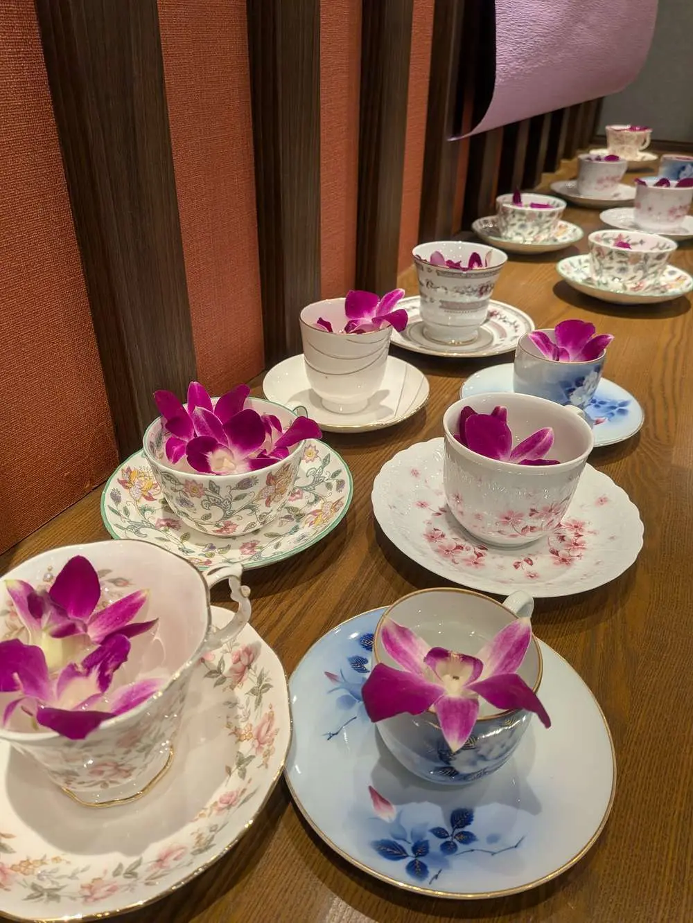 モニュメントには華やかな☕カップフラワー🌸を並べ、