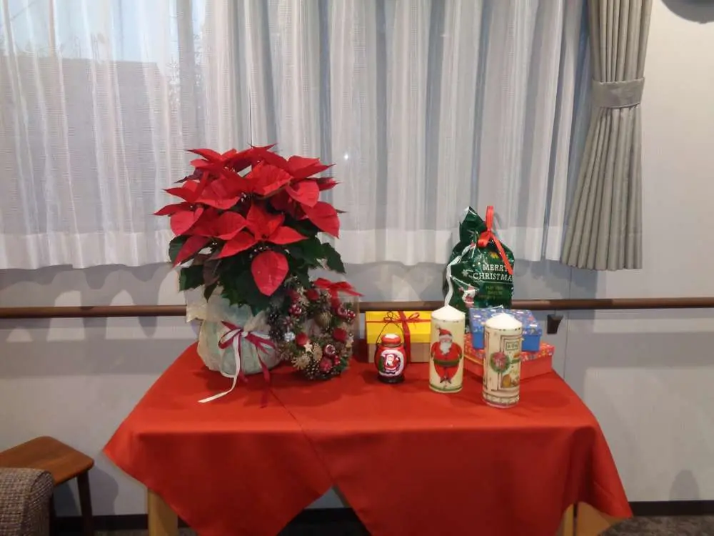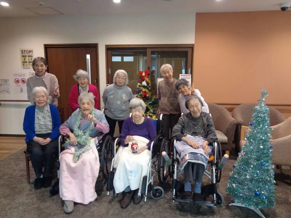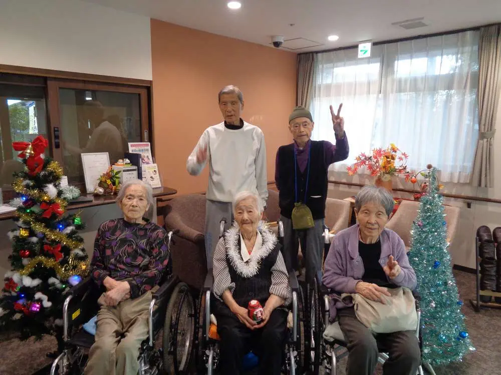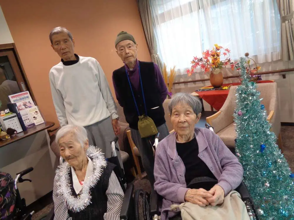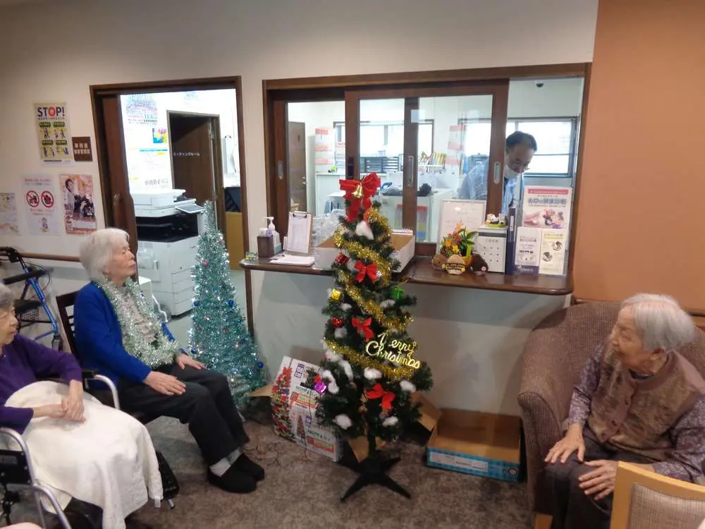 歌やご入居様同士笑いながら、サンタクロースや雪だるまの人形も飾り、館内が一気に華やかになり明るい雰囲気になりました♪♪☺☺☺