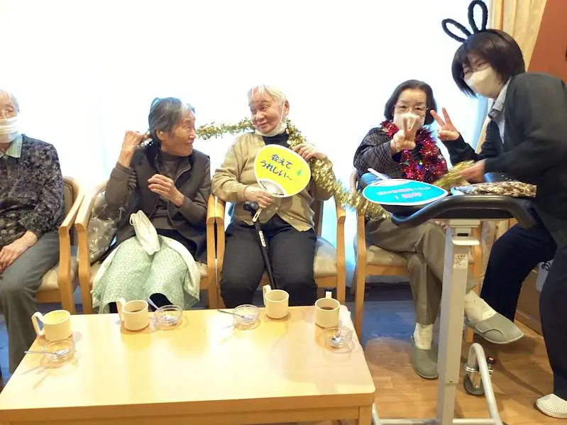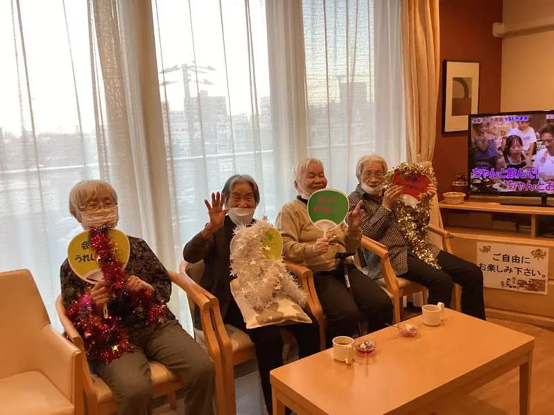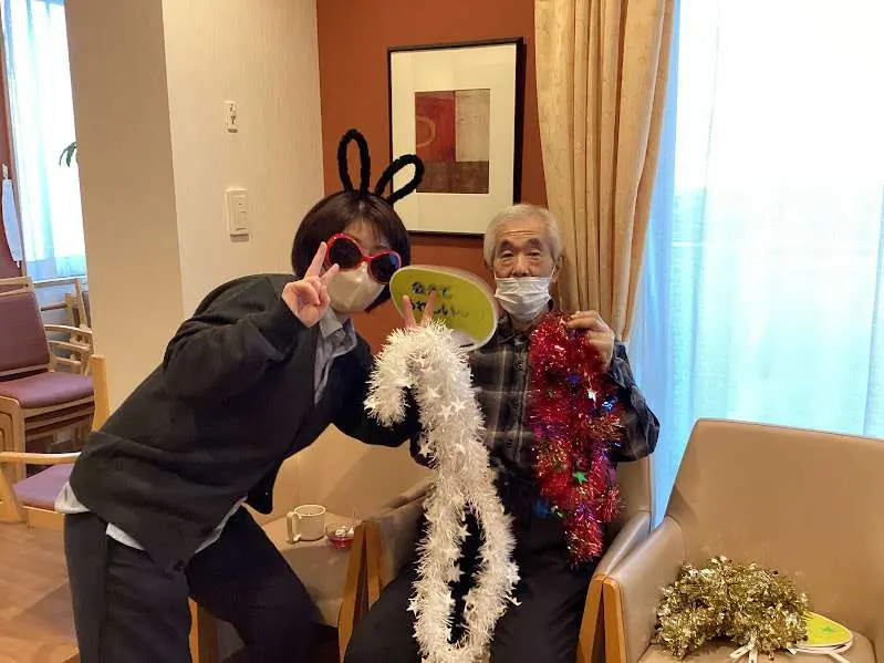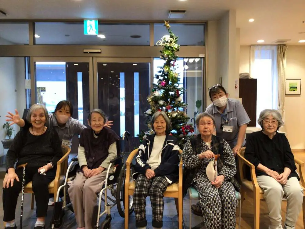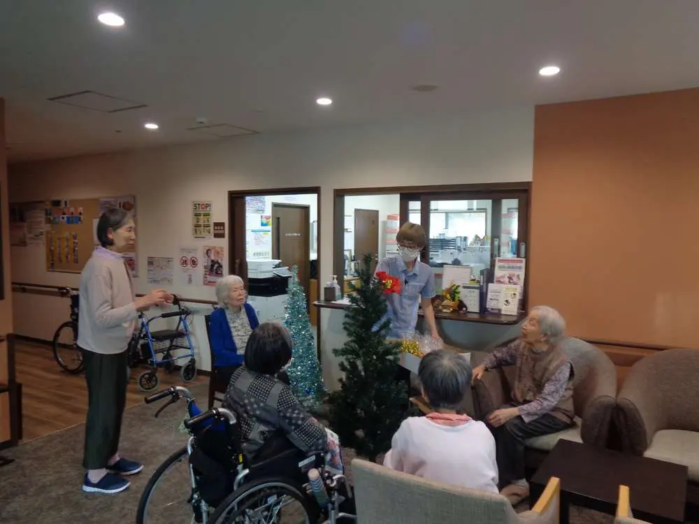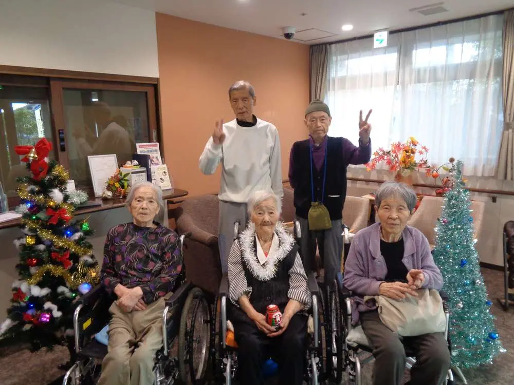 歌やご入居様同士笑いながら、サンタクロースや雪だるまの人形も飾り、館内が一気に華やかになり明るい雰囲気になりました♪♪☺☺☺