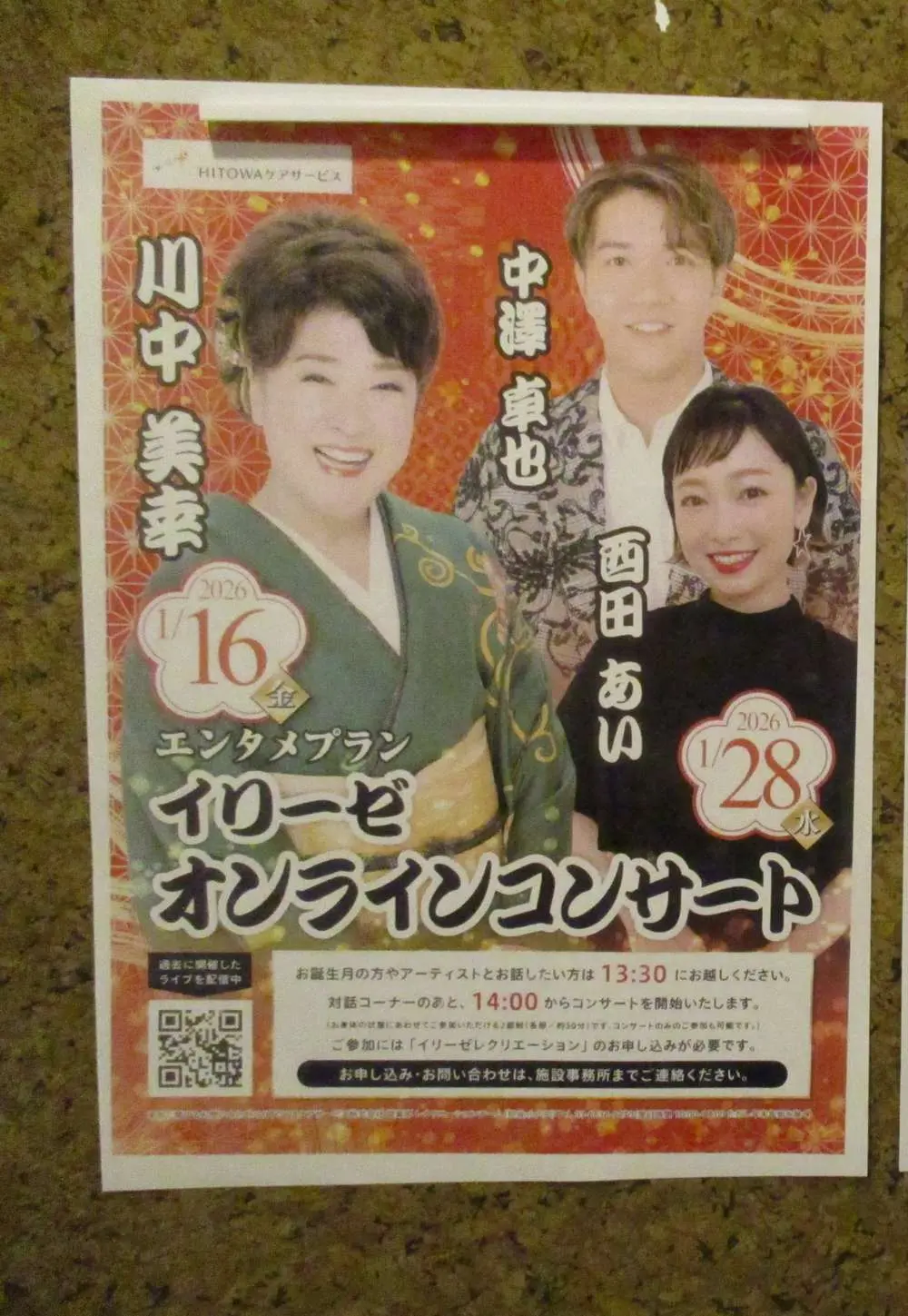 2026年1月16日イリーゼ厚別にて、川中美幸さんオンラインコンサートを開催いたしました。