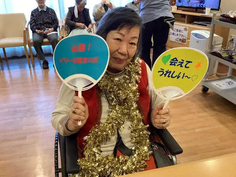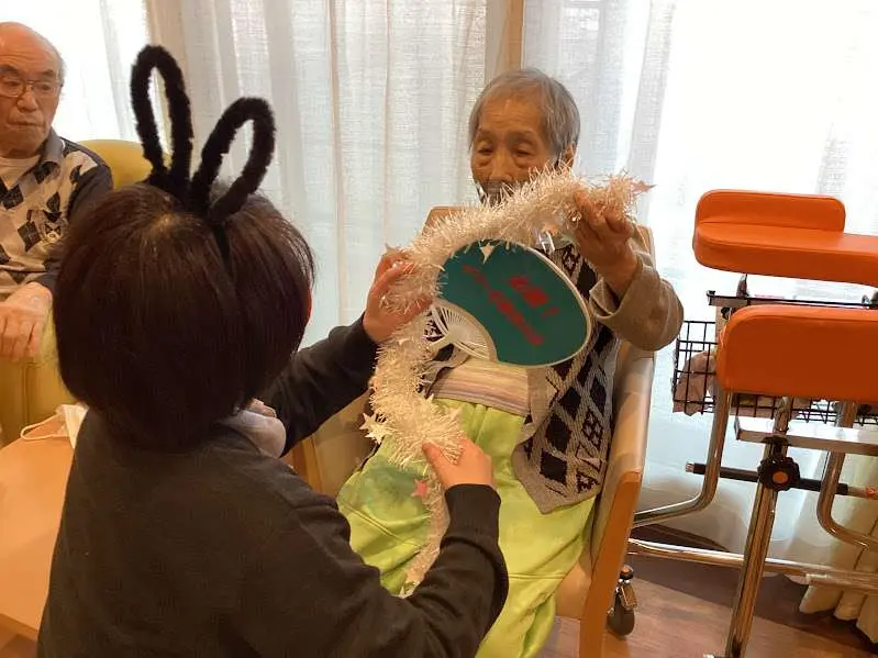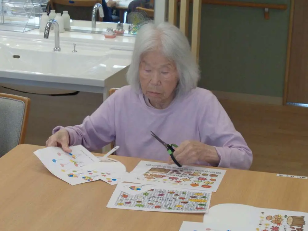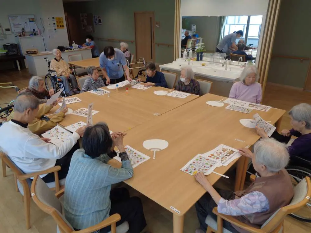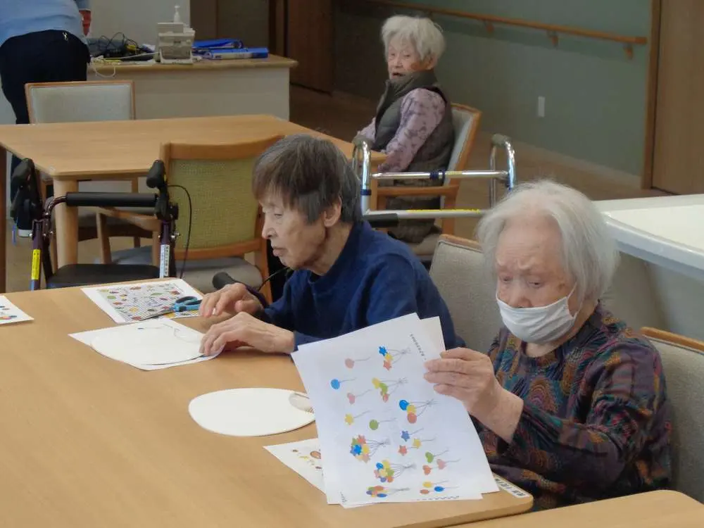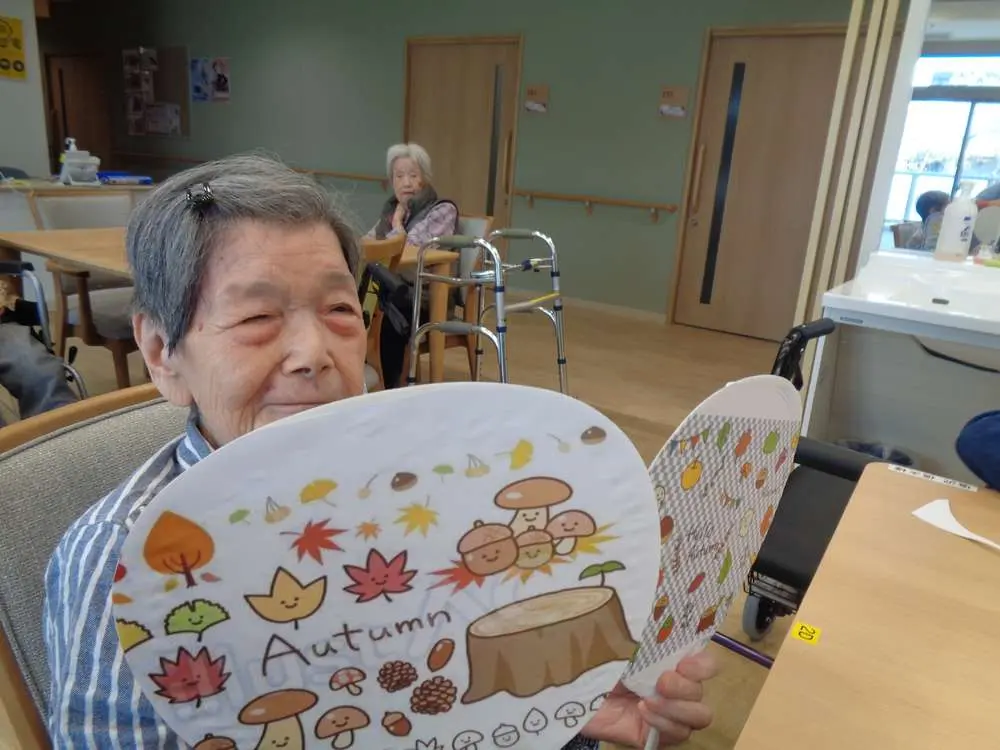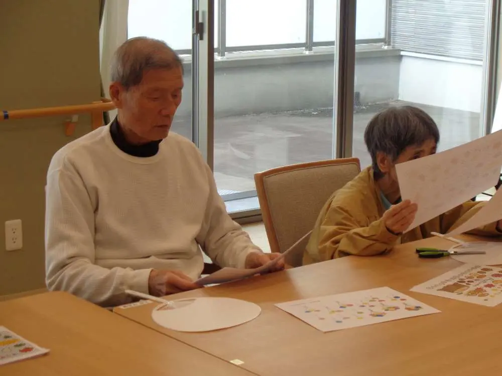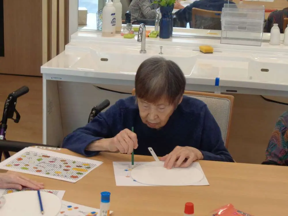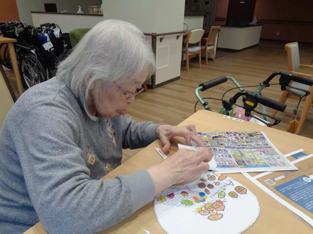 さて、イリーゼ福生では12/3のオンラインレクに向けての団扇作りを行っています( *´艸`)