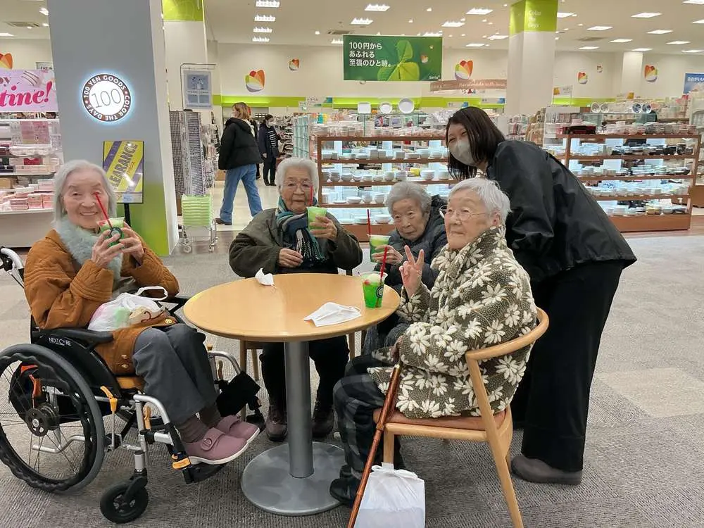 入居者の皆さんには初めての買い物レクだったので、「何を買おうか」「どんなものがあるのか」など出発前から皆さん楽しんでおられ、実際に購入した後は「久しぶりに買い物が出来た」「いろいろな商品があって選ぶのに迷った」「欲しいと思っていたものが買えて満足」といったご様子でした(^^)v