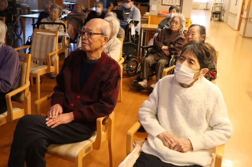 途中の対話コーナーに目を細め聞き入るお客様、また歌が始まると、手拍子、膝拍子など職員と一緒に なって、楽しまれていました。最後の曲「ブルーライト横浜」には、私の思い違いでしょうか、あの拍手は、「アンコール」の拍手? 1月28日も西田あいさん、中澤卓也さんのオンラインコンサートです、楽しみましょう。