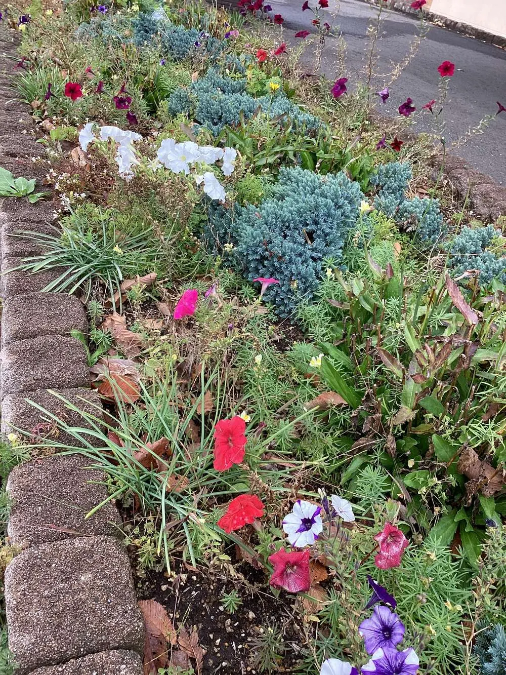 読書の秋、芸術の秋、味覚の秋、、、玄関前の花壇の花達も、頑張ってまだ咲いています🌸🌸