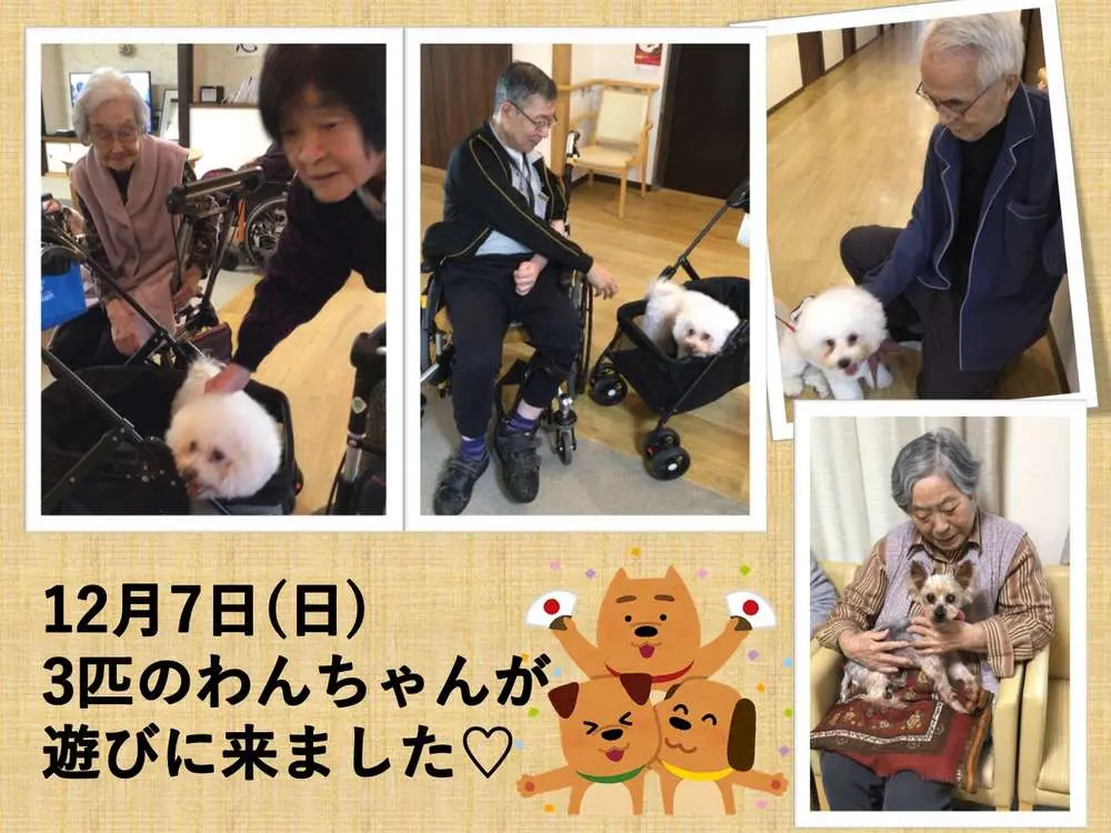12月7日(日)、職員の愛犬3匹と、元気いっぱいのお子さん2人が遊びに来てくれました。