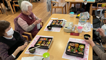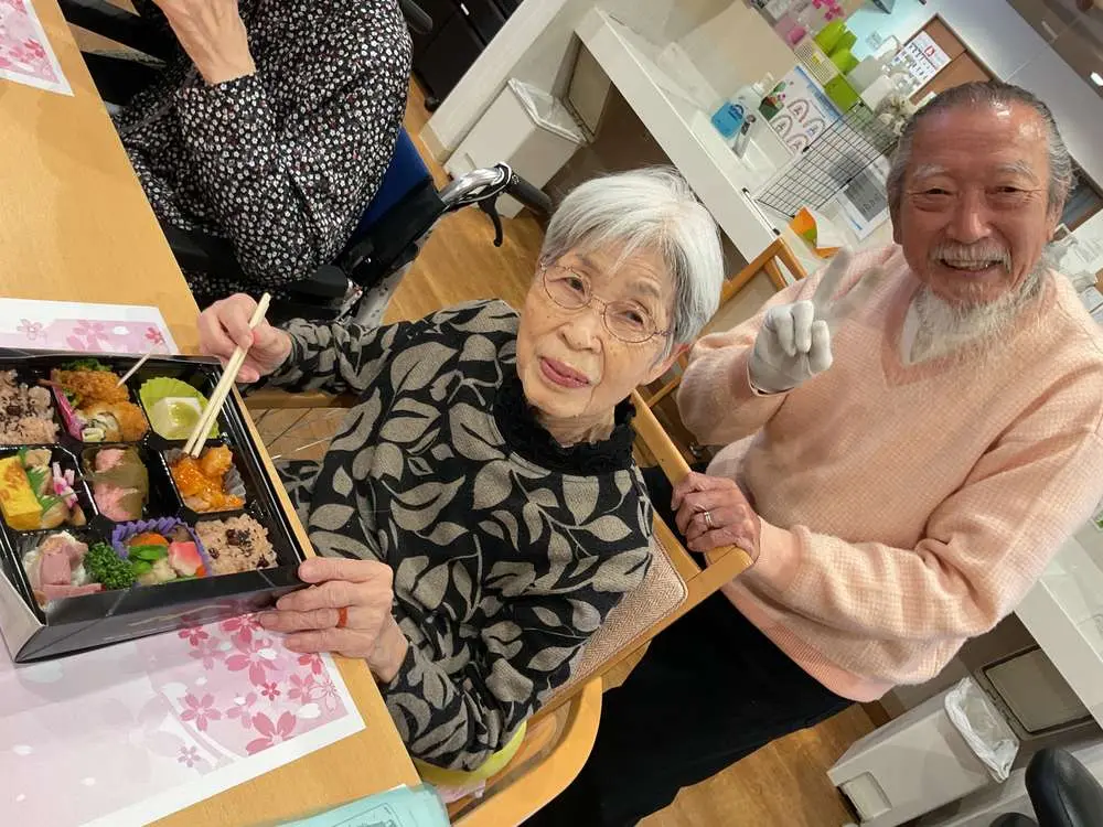 今年の桜は例年より少し早かったのか…デイーサービスのお昼にご用意した《お花見弁当》のご提供の日には、ほとんどの所で葉桜なってしまったいました。