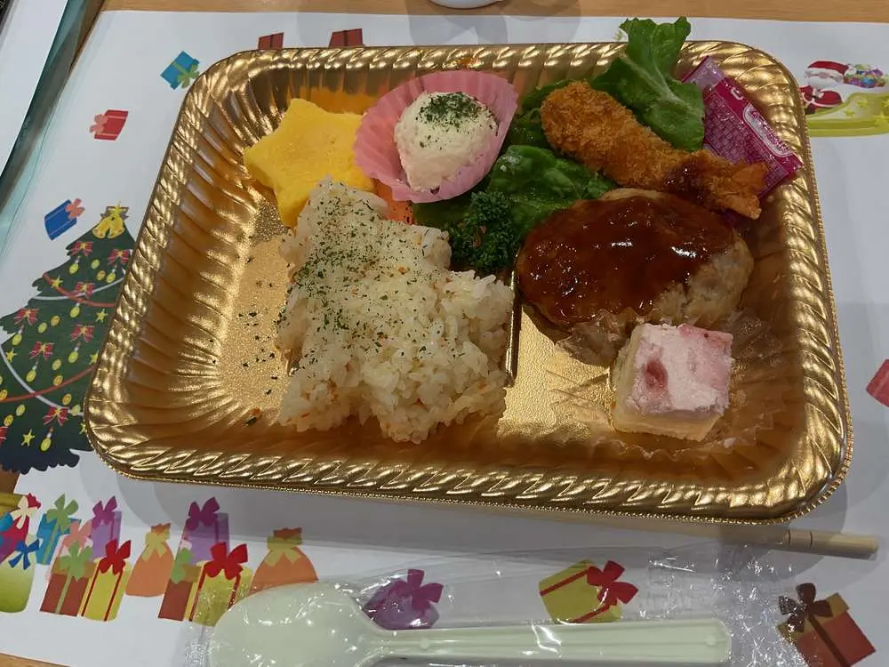 クリスマスの昼食は、クリスマスプレートをご用意しました! ツリーを型どったピラフに星形の卵焼き、エビフライにハンバーグ、ミニケーキも付いた華やかご飯でした🎄 目先の変わったクリスマスプレートに皆さま笑顔で楽しく美味しく召し上がって頂けました☆彡