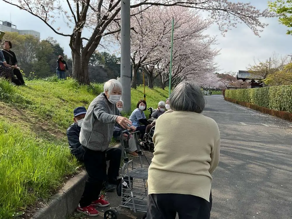 デイサービスで、いつもお邪魔している蓮光寺の川沿いに屋外歩行・外気浴を兼ねてお花見に出かけました!
