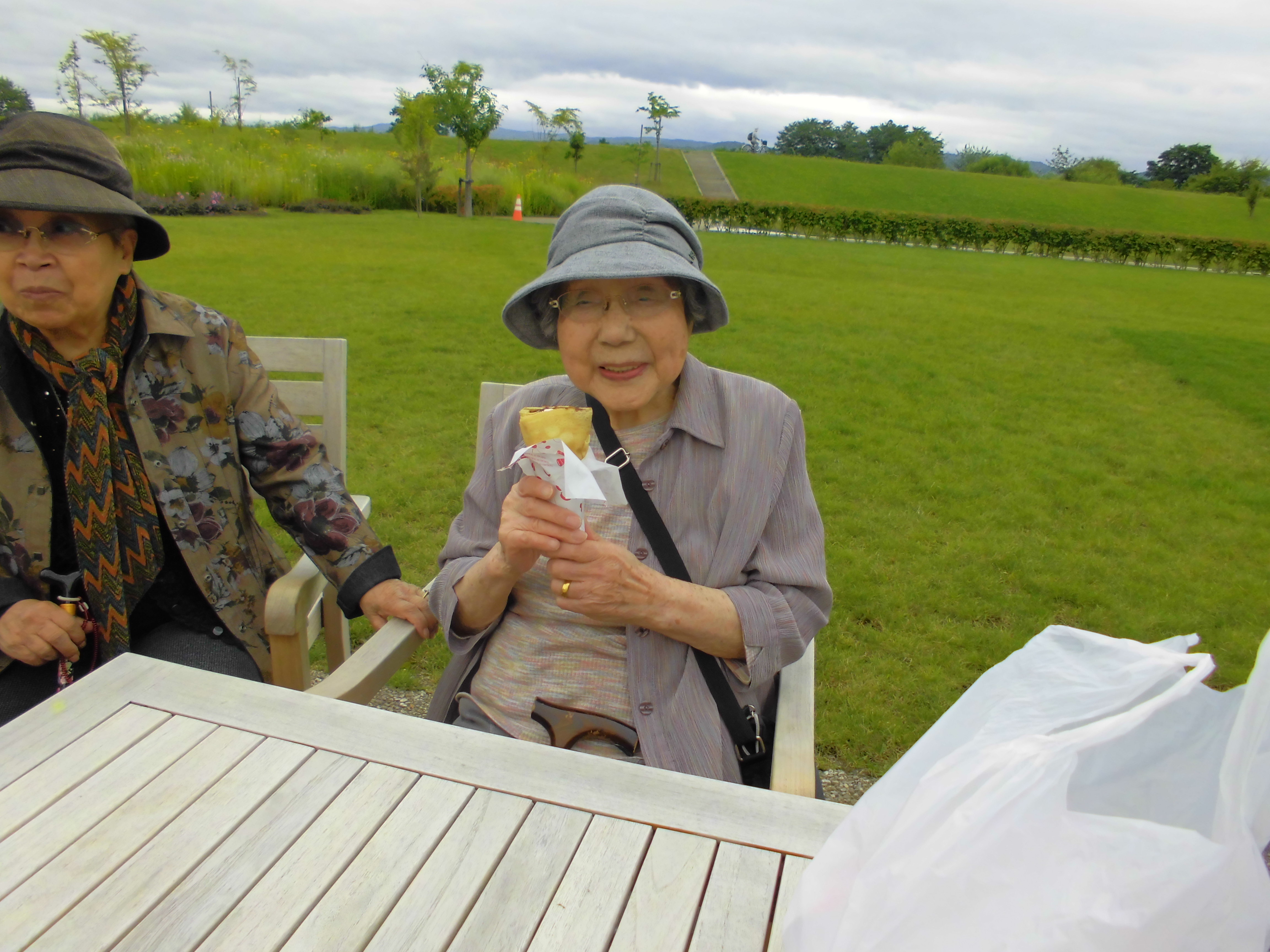 二日目の22日(日)はあいにくの雨でしたので、車中でのソフトクリームとなりましたが、道中の車内からラベンダーなどのお花を眺めたり出来て、喜ばれておりました。
