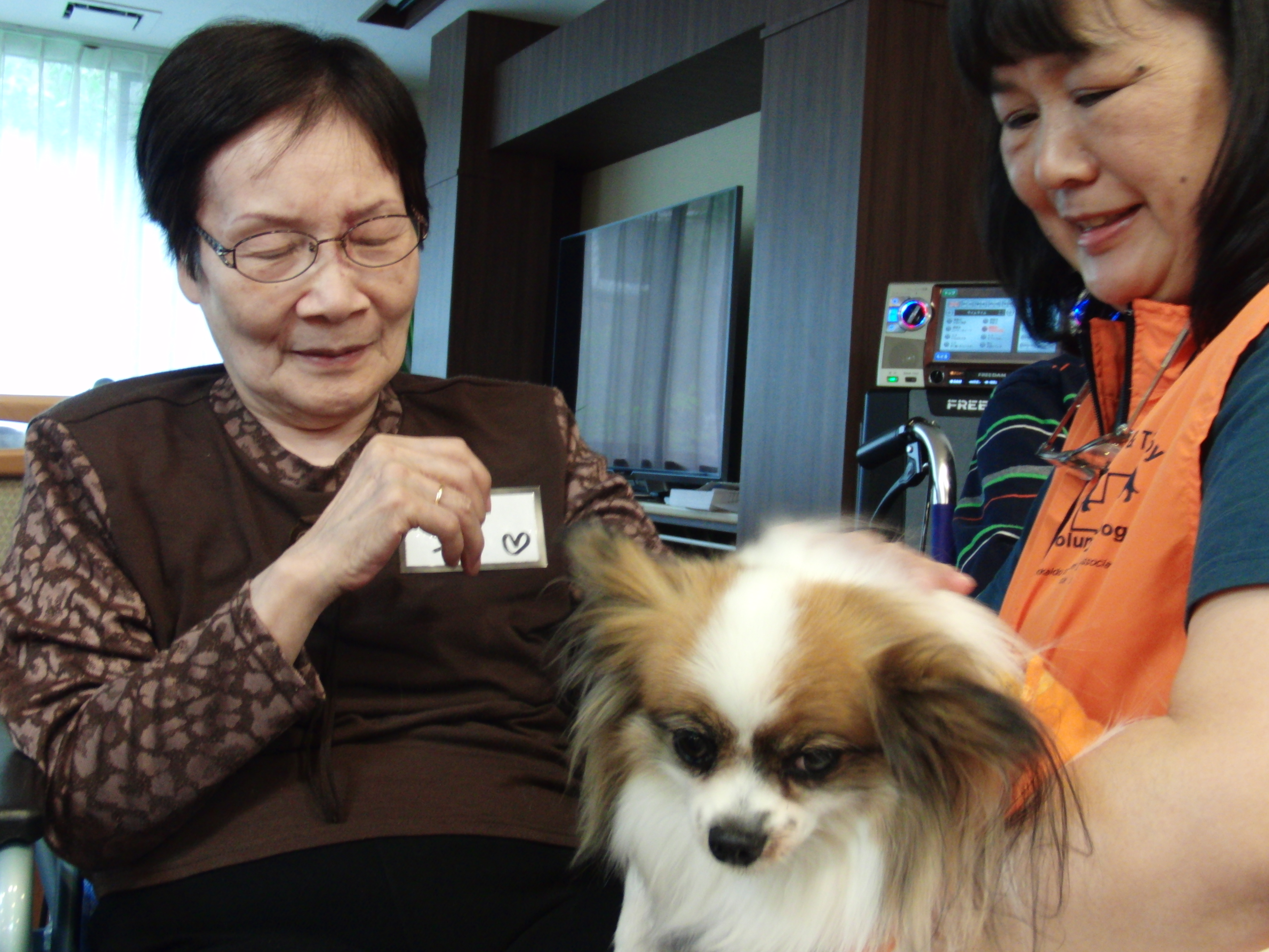 おとなしくて可愛いワンちゃん達に、入居者の皆様の顔も朗らかですね(^^)