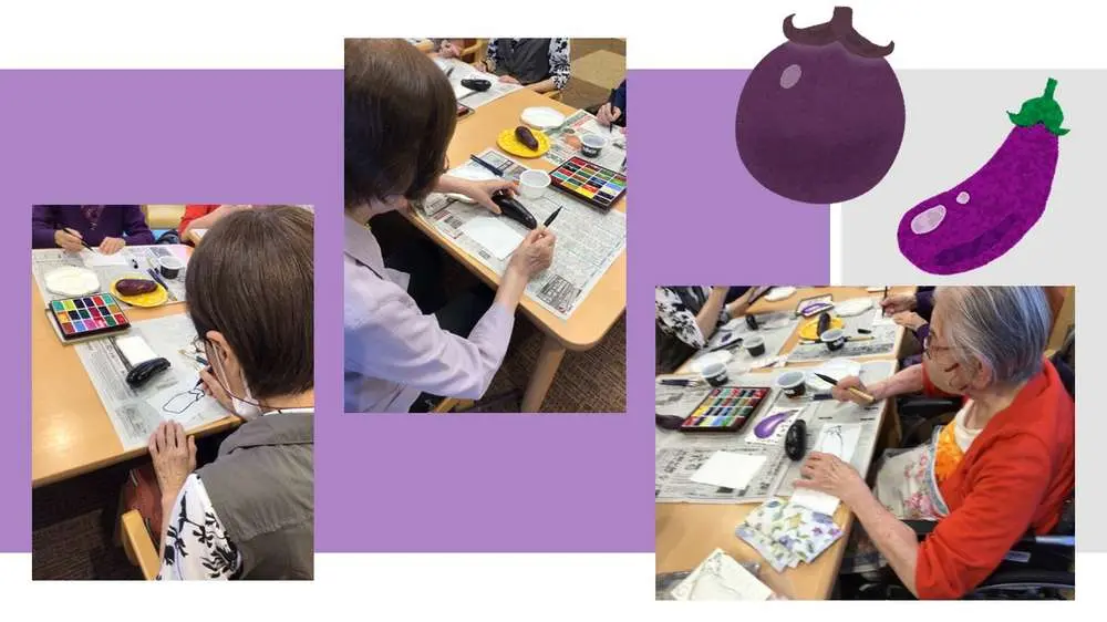 今月の絵手紙教室 題材は「秋ナス」です🍆🍆