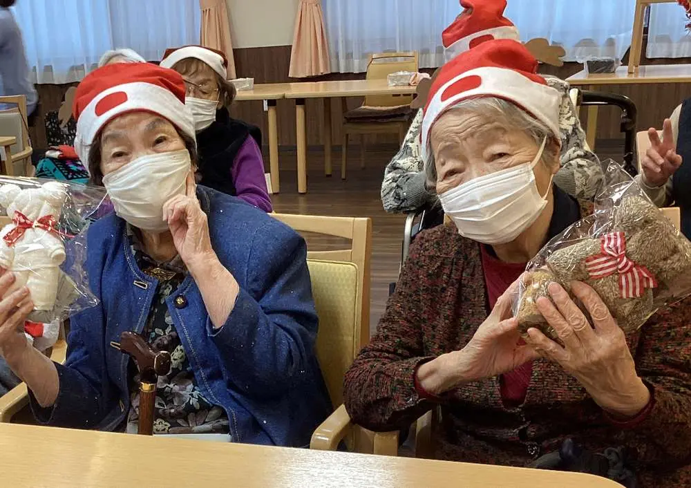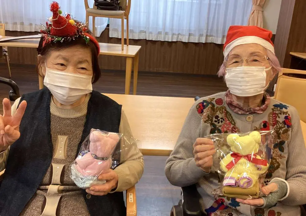 そして、入居者様へのクリスマスプレゼントは【タオルベア&靴下のセット】です🎁✨
