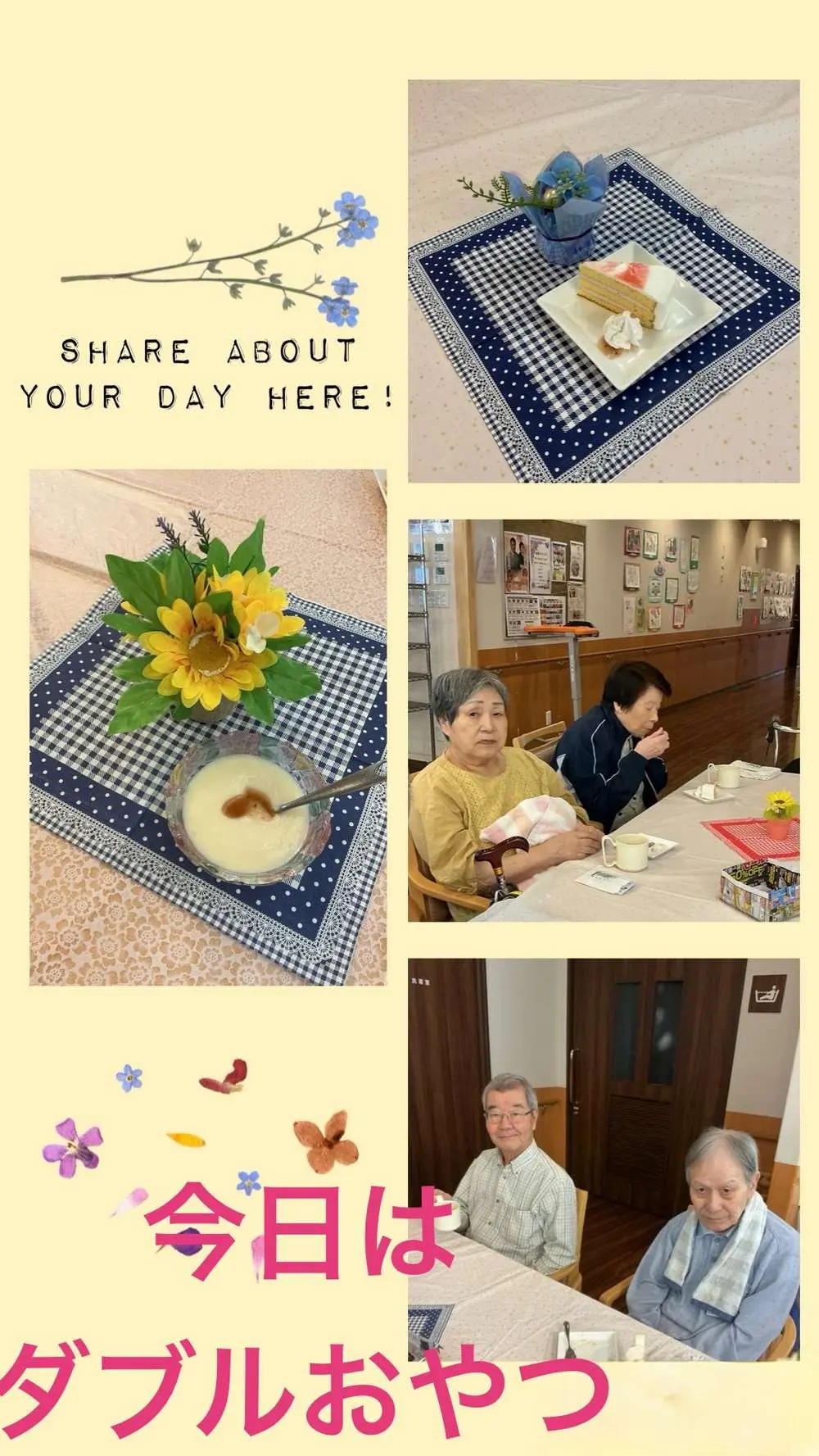 数々の試練を乗り越え、たくさんの苦労をされてここに辿り着いた方もいらっしゃると思いますが、どうか私達と一緒に、穏やかで楽しい日々を過ごされて下さい!毎回、誕生日ケーキを美味しそうに召し上がるお顔を見ると、私達もホッといたします。