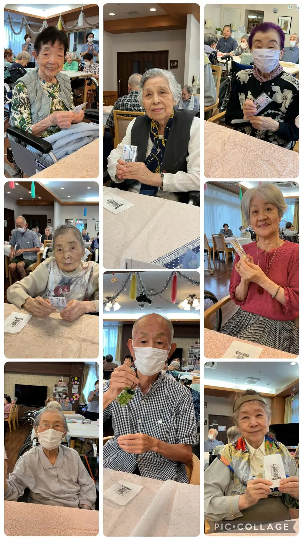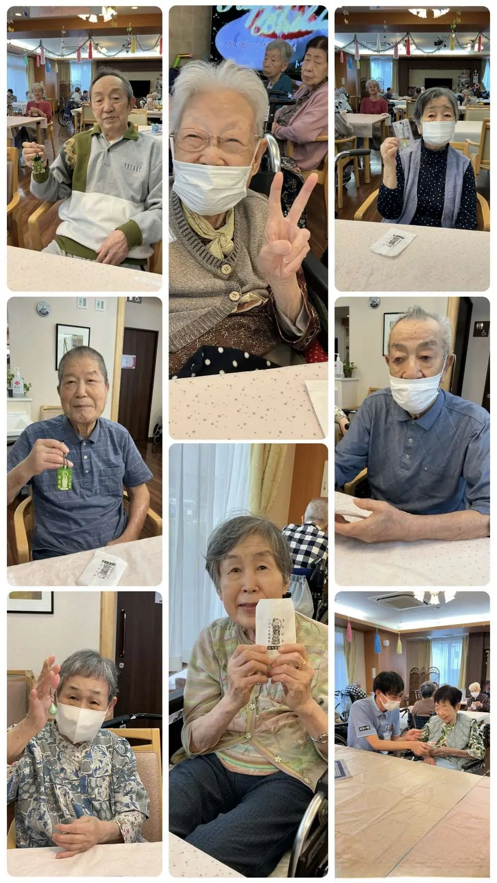9月は3名の方がお誕生日を迎えました♪敬老の日前日ということで、皆様には巣鴨地蔵の鈴付きお守りをプレゼント!感謝を込めて一人一人に手渡ししました。喜んで下さり、シルバーカーや杖などに付けて鈴の音を楽しんでいらっしゃいました。その後お待ちかねのケーキ登場!!今回は、ショートケーキ。苺は乗っていなかったのですが甘酸っぱくて美味しかったそうです(´▽`)