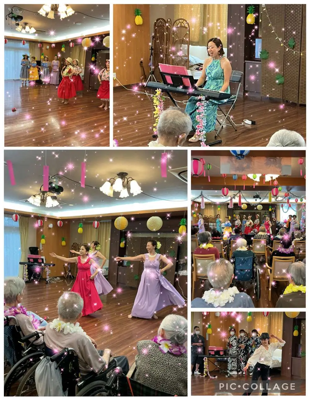 フラガールの皆は、何日も前から練習を重ね見ごたえのあるショーにするため、衣装や装飾品を厳選し、少しでも楽しんで頂く為今回も頑張りました。途中、コメディーも織り込んでのひと時はあっという間でした。