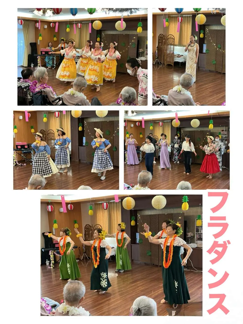 まずは午前の部で私(大泉)が所属しております「プカラニフラ」のフラダンスショーに加え今井麻子のミニコンサートを行いました♪コンサートでは、青い山脈を皆さんと一緒に歌い、会場が一つになっていました。麻子さんの歌声も素晴らしかったです!