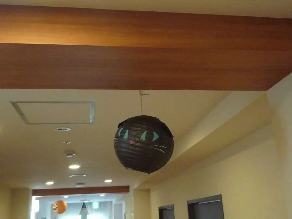 エレベーター内や廊下にカボチャなどの装飾がされております☆彡