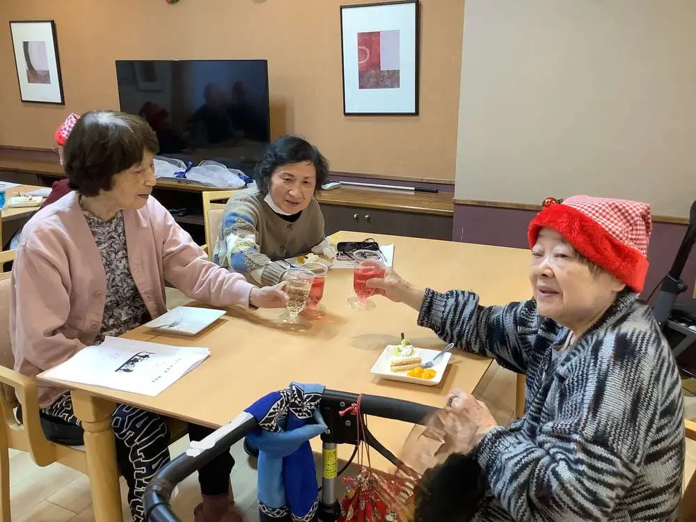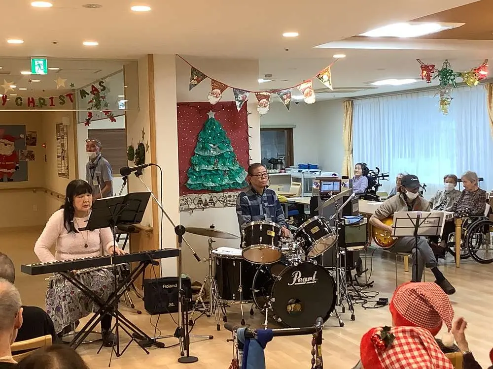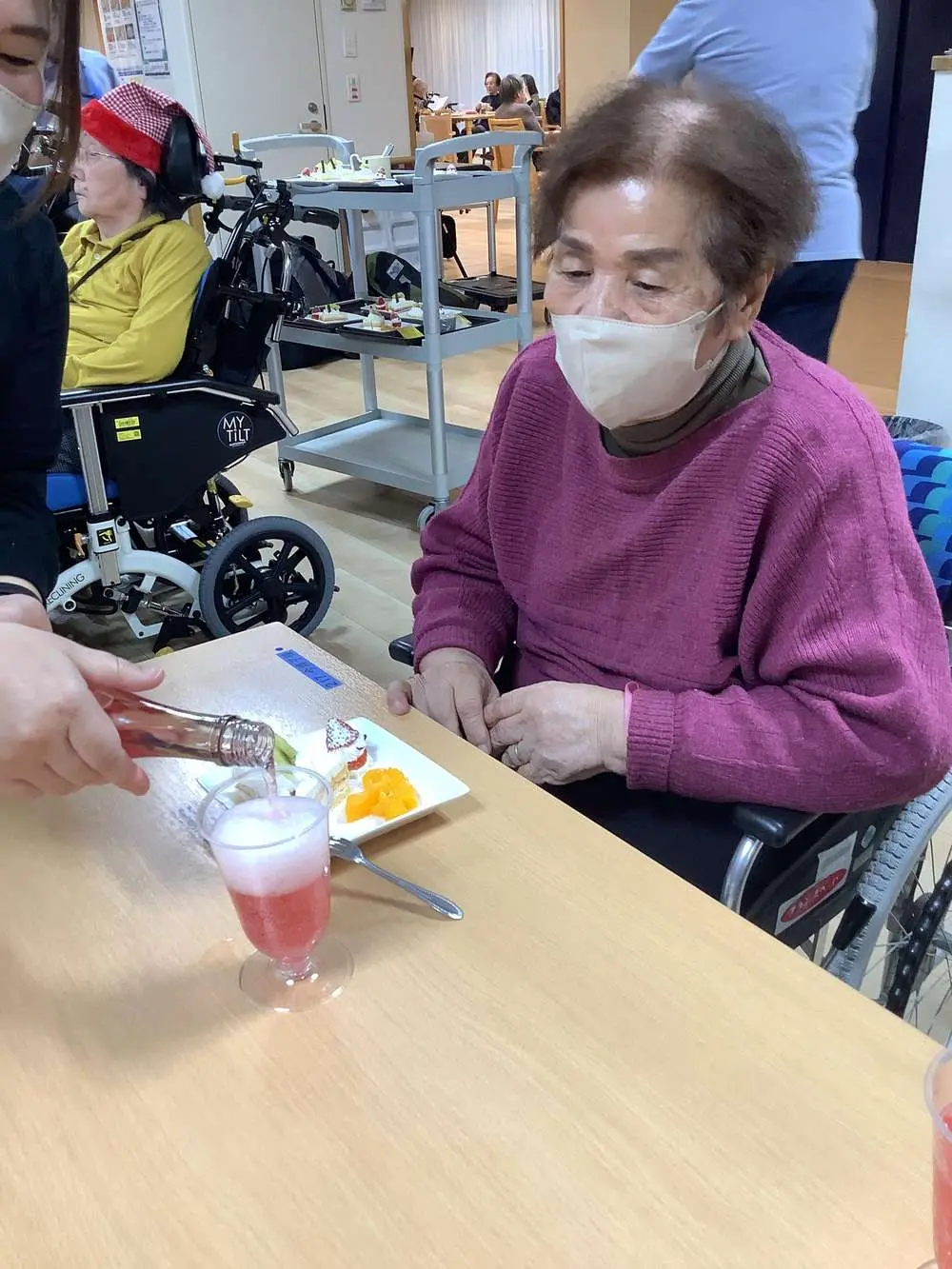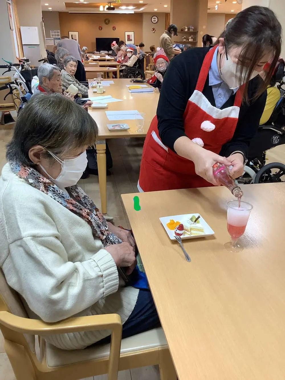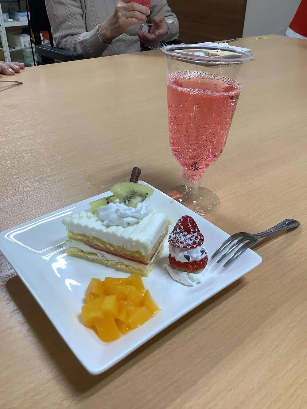 ボランティアさんの演奏会から始まり、クリスマスケーキ🍰とシャンメリー🍷で乾杯です!!
