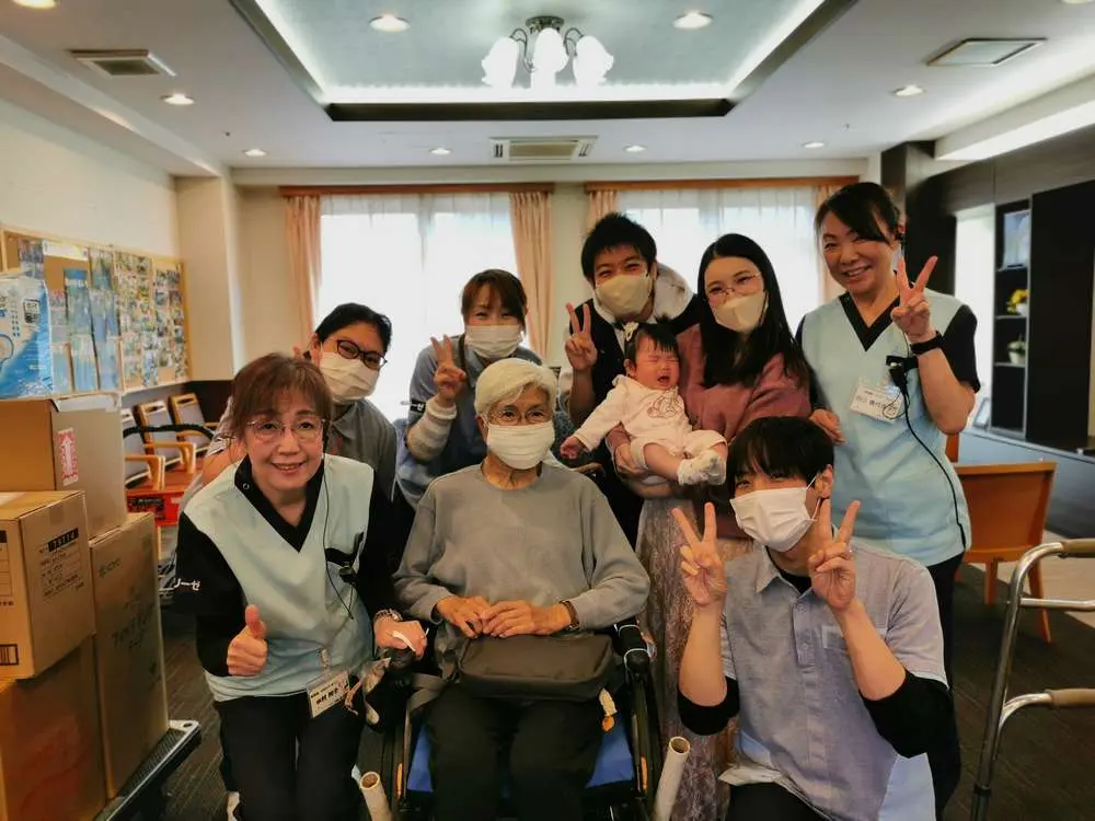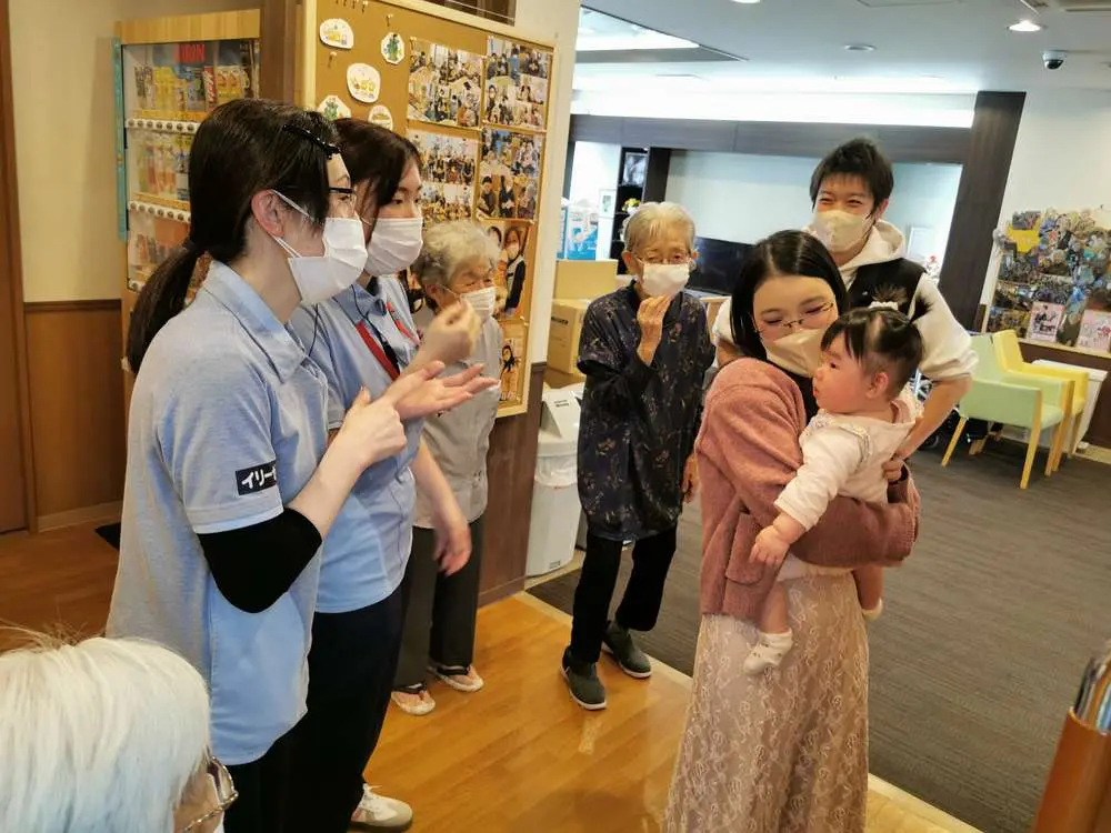 最後は入居者様も一緒に太鼓を叩いて楽しみました!!