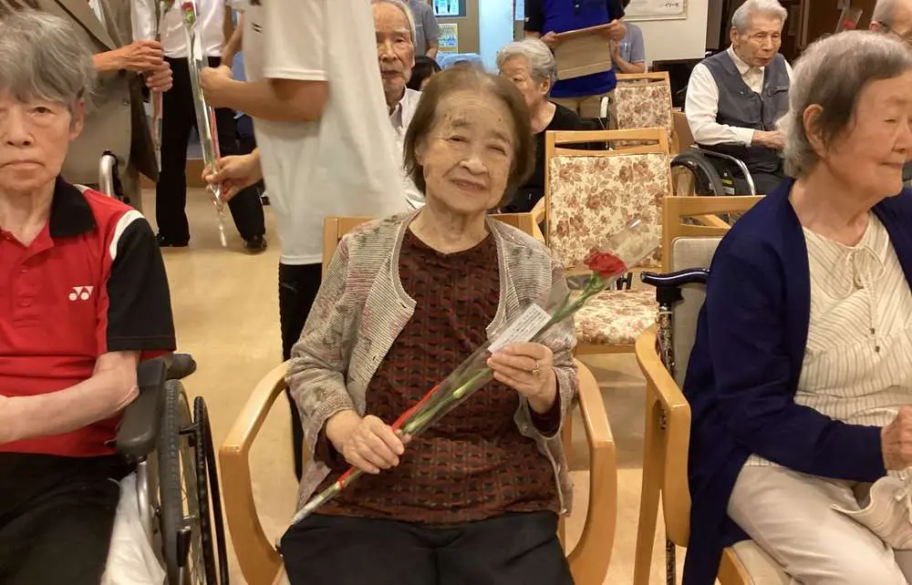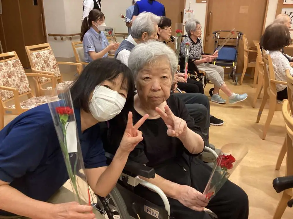 最後にはご入居者様1人1人に感謝の意を述べられカーネーションが贈呈されました。