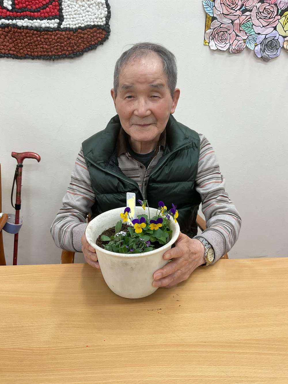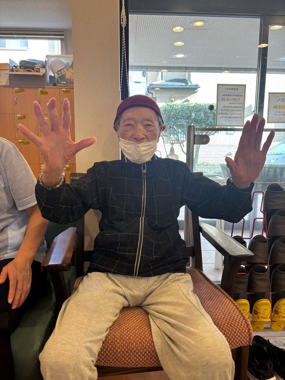 写真ではお伝えしにくいのですが、男性のご利用者様は歌を歌いながら歩行訓練をなさっておりました☺️そしてひと休みで写真をパシャリ📷