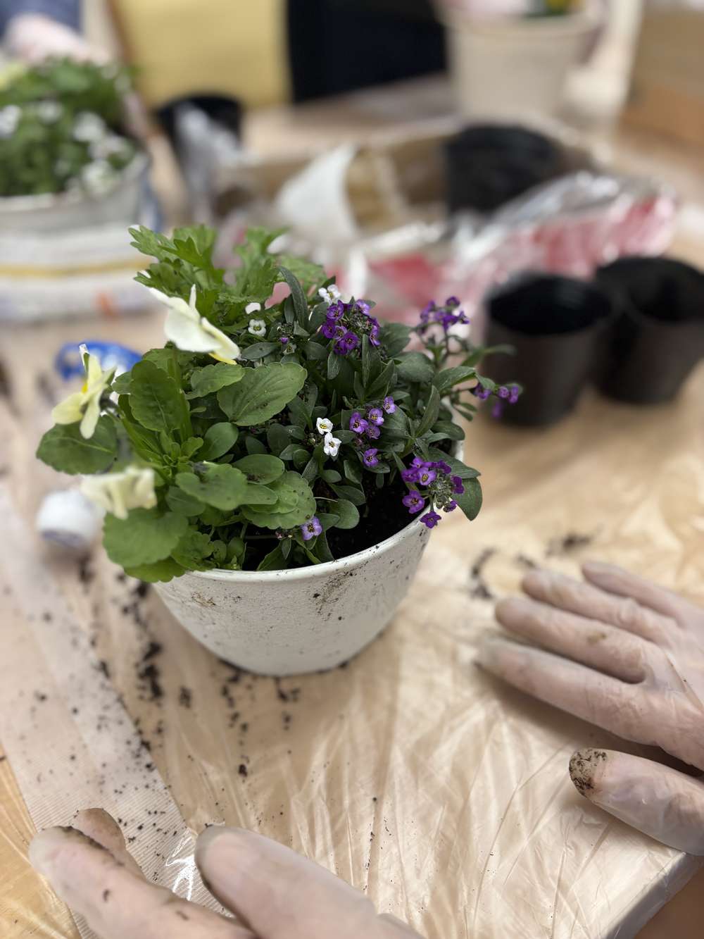 どの組み合わせがいいか悩んだりしながら素敵な寄せ植えになりましたね🥰